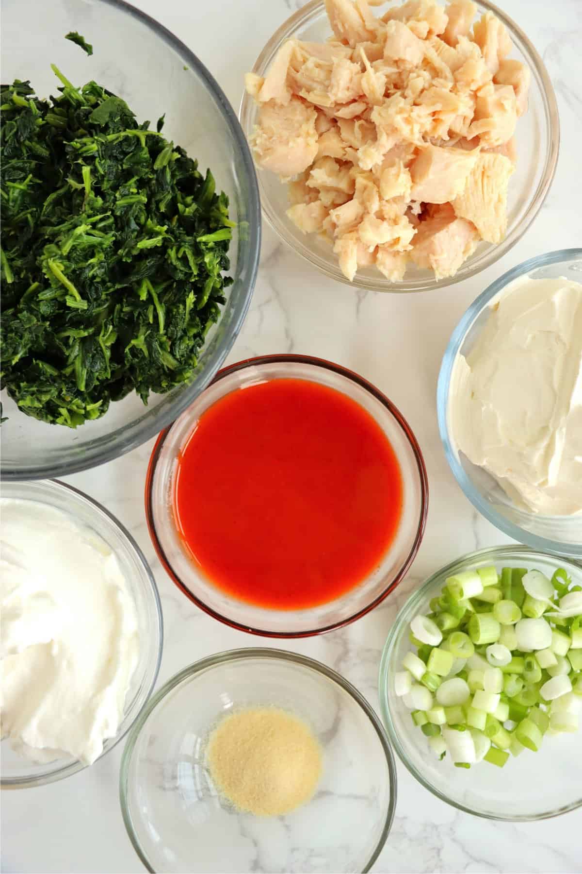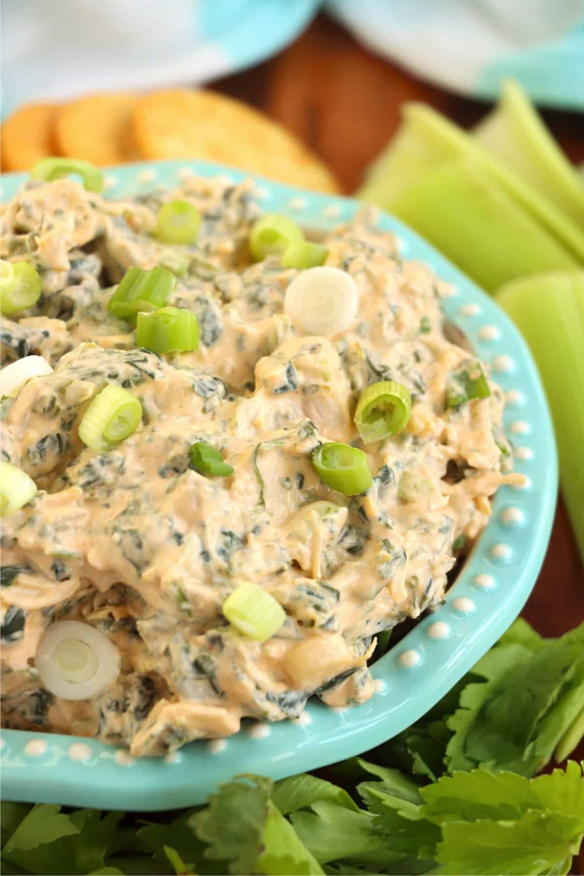 Buffalo chicken spinach dip combines the hot and spicy kick of buffalo chicken with the smooth, creamy goodness of spinach dip to create the ultimate party dip. It's perfectly balanced, full of flavor, and ready in minutes.