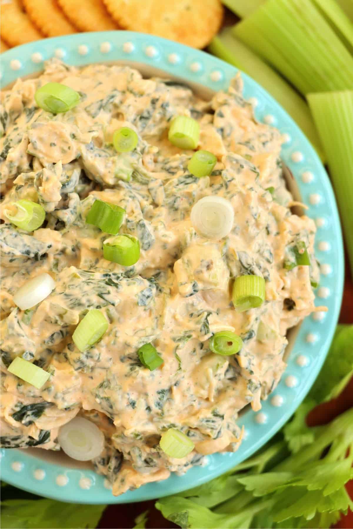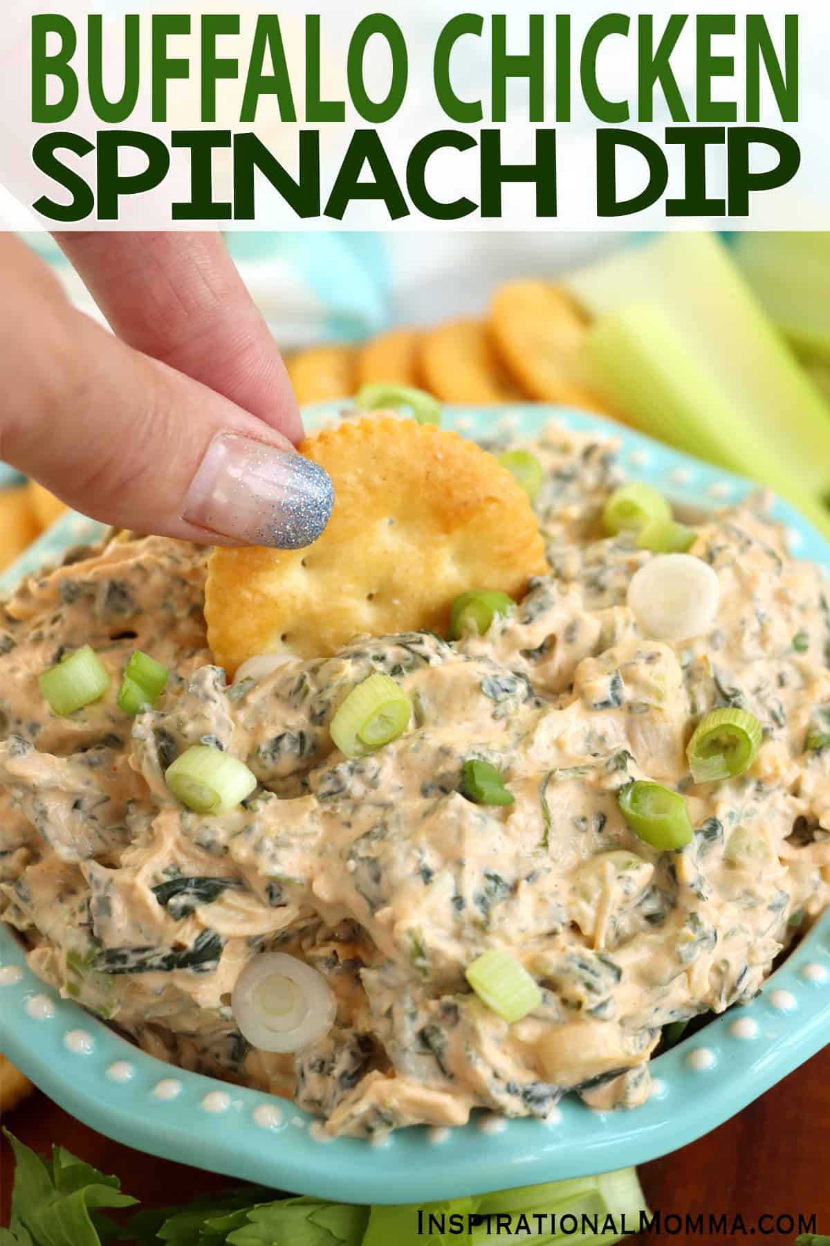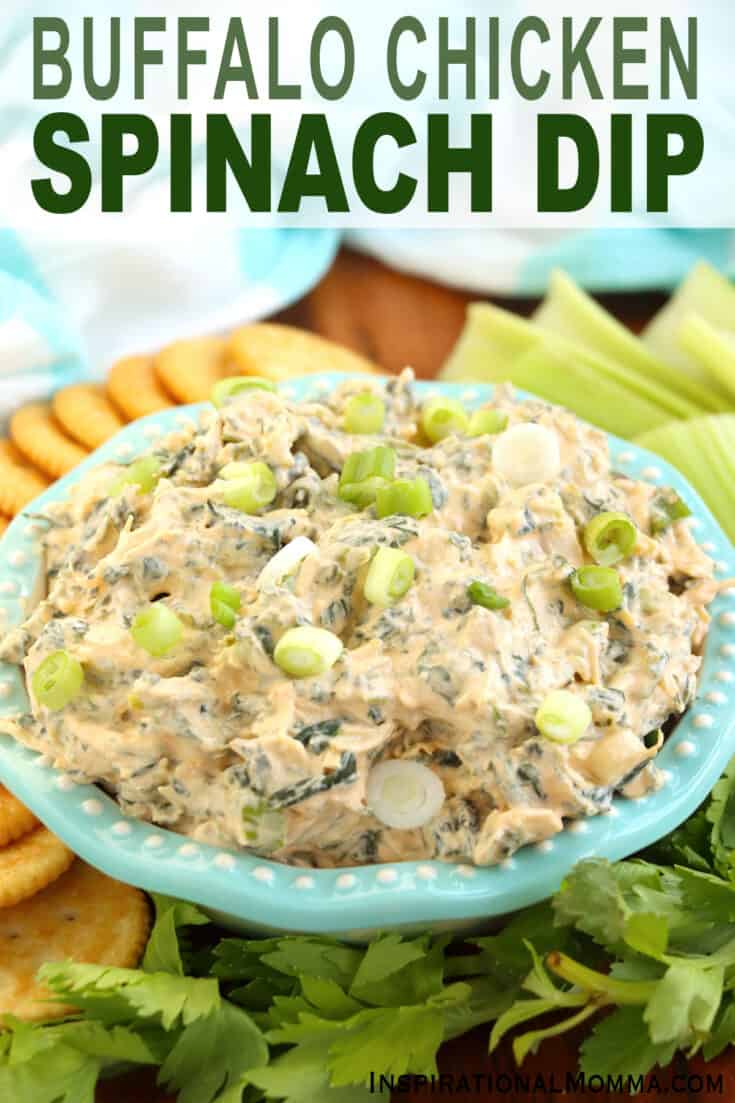 Buffalo chicken spinach dip combines two classic party flavors to deliver one amazing dish that's perfect for any gathering or occasion.