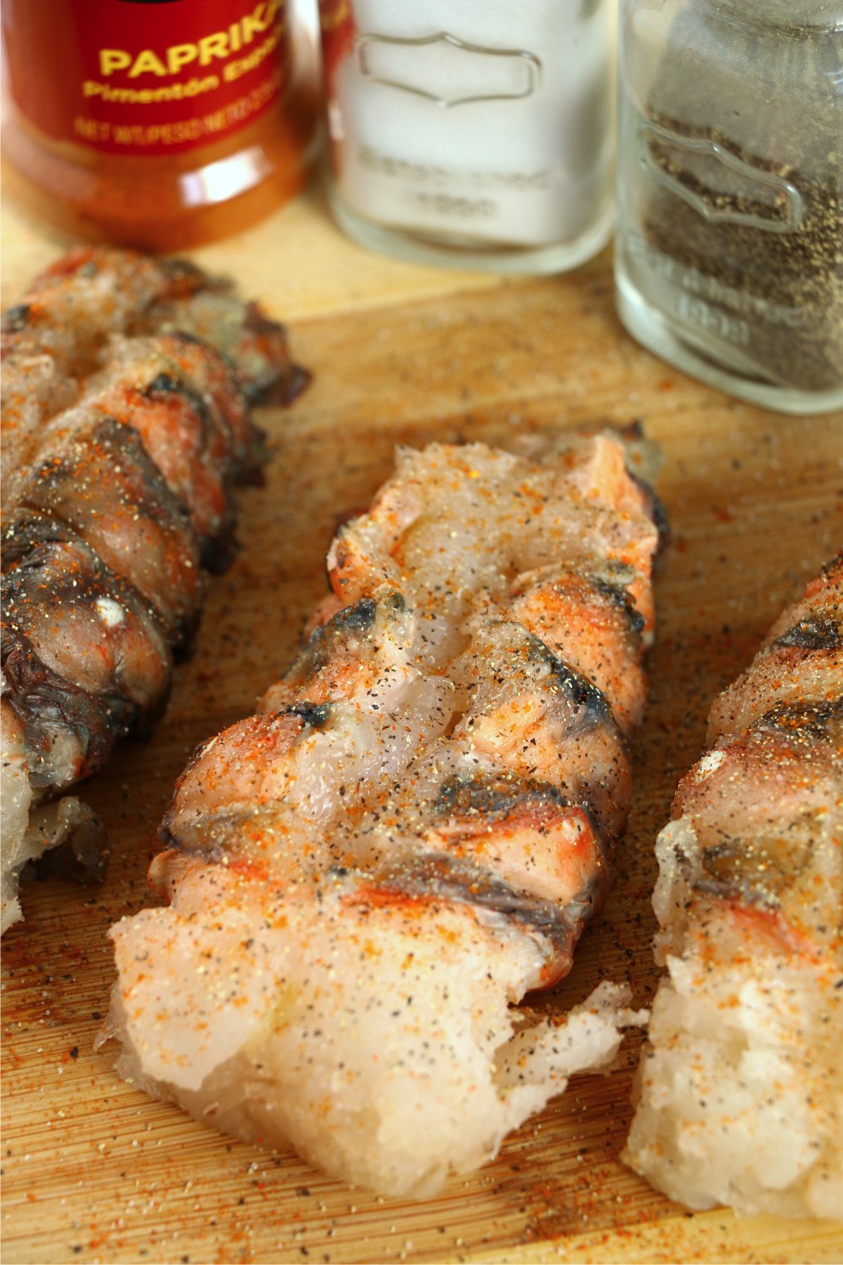 Step 5: Season lobster tails with salt, pepper, and paprika.