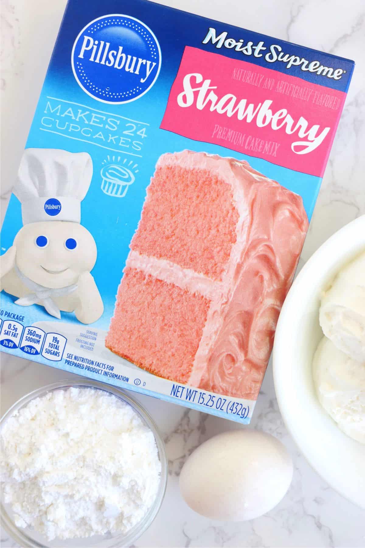 - Cake mix of any flavor for a 9x13-inch cake (I used strawberry)