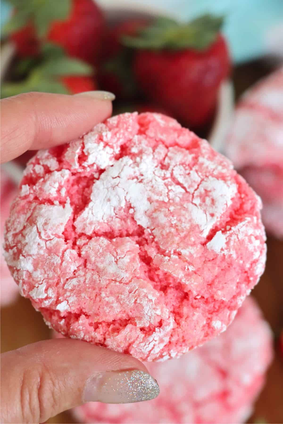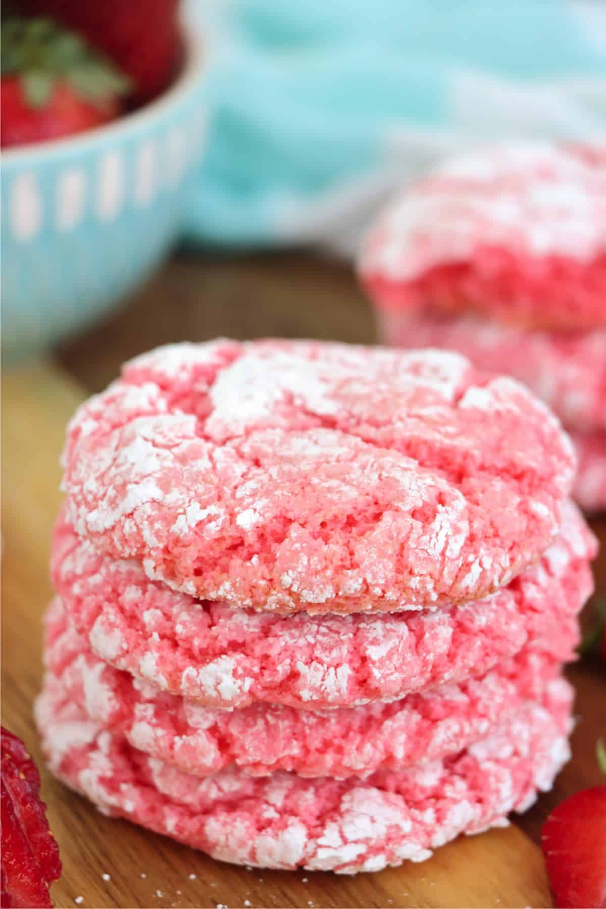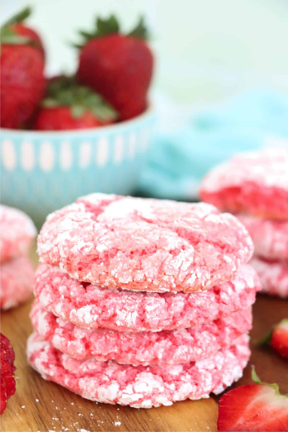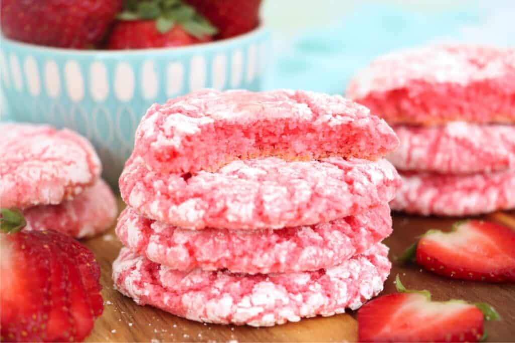 Cool whip cookies are one of my favorite kinds of cookie to make. They take a handful of ingredients, and they're so much fun to play with! These cookies are strawberry, but you can create all kinds of different flavors just by changing the cake mix you use.