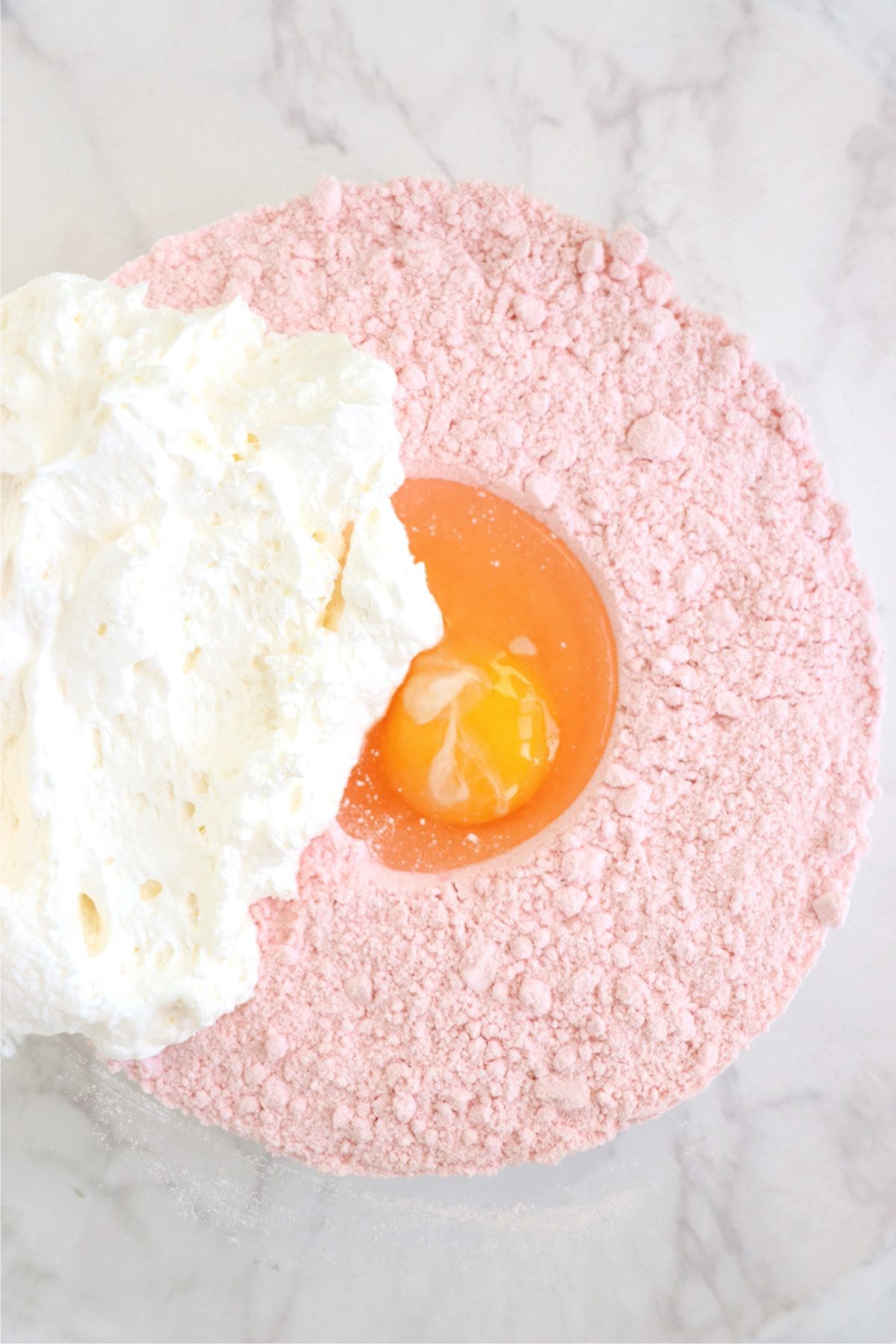 - In a large mixing bowl, combine cake mix, egg, and whipped topping until smooth.