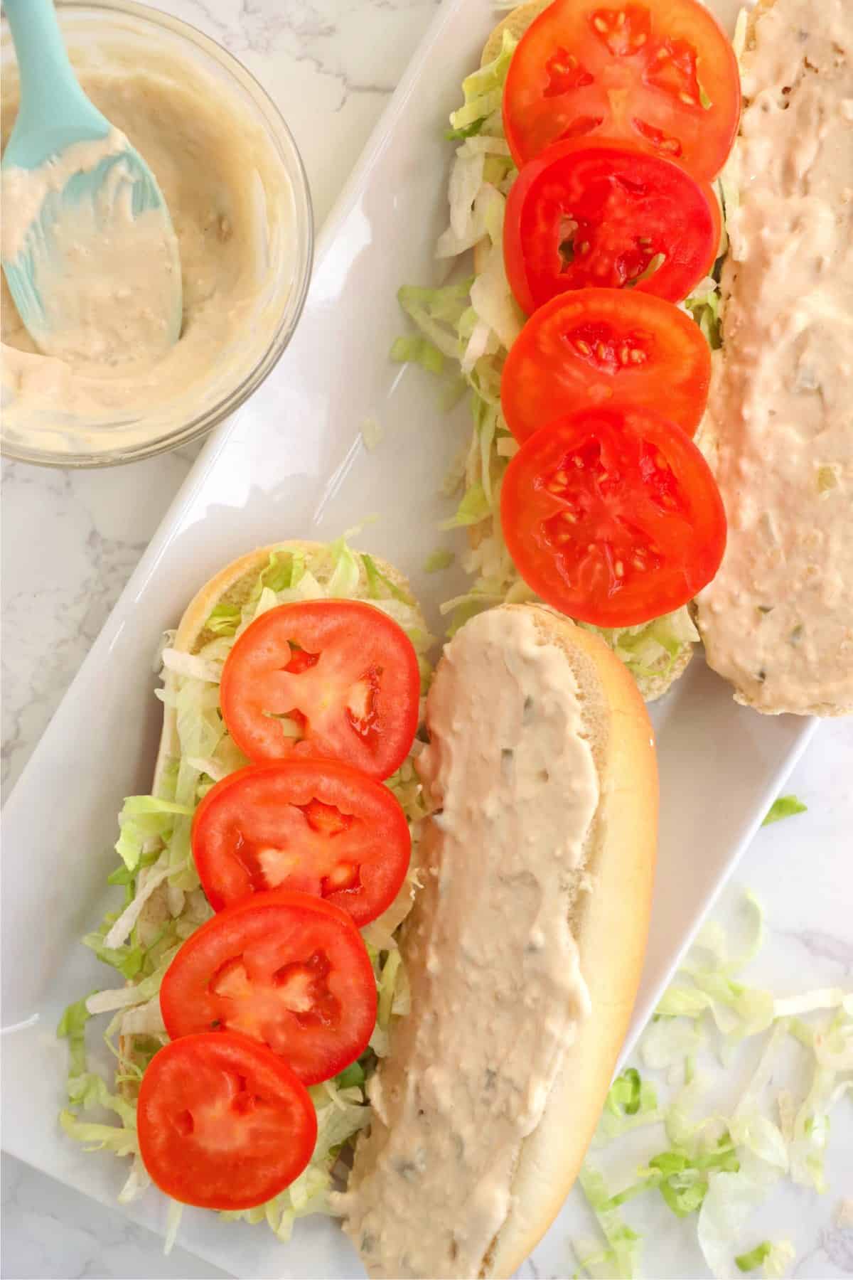 - Sub Bun, Shredded Lettuce, Sliced Tomato: These are the classic finishers for your po boy, giving you a soft bread bed for the sandwiches and bright, classic flavors for the sandwiches.