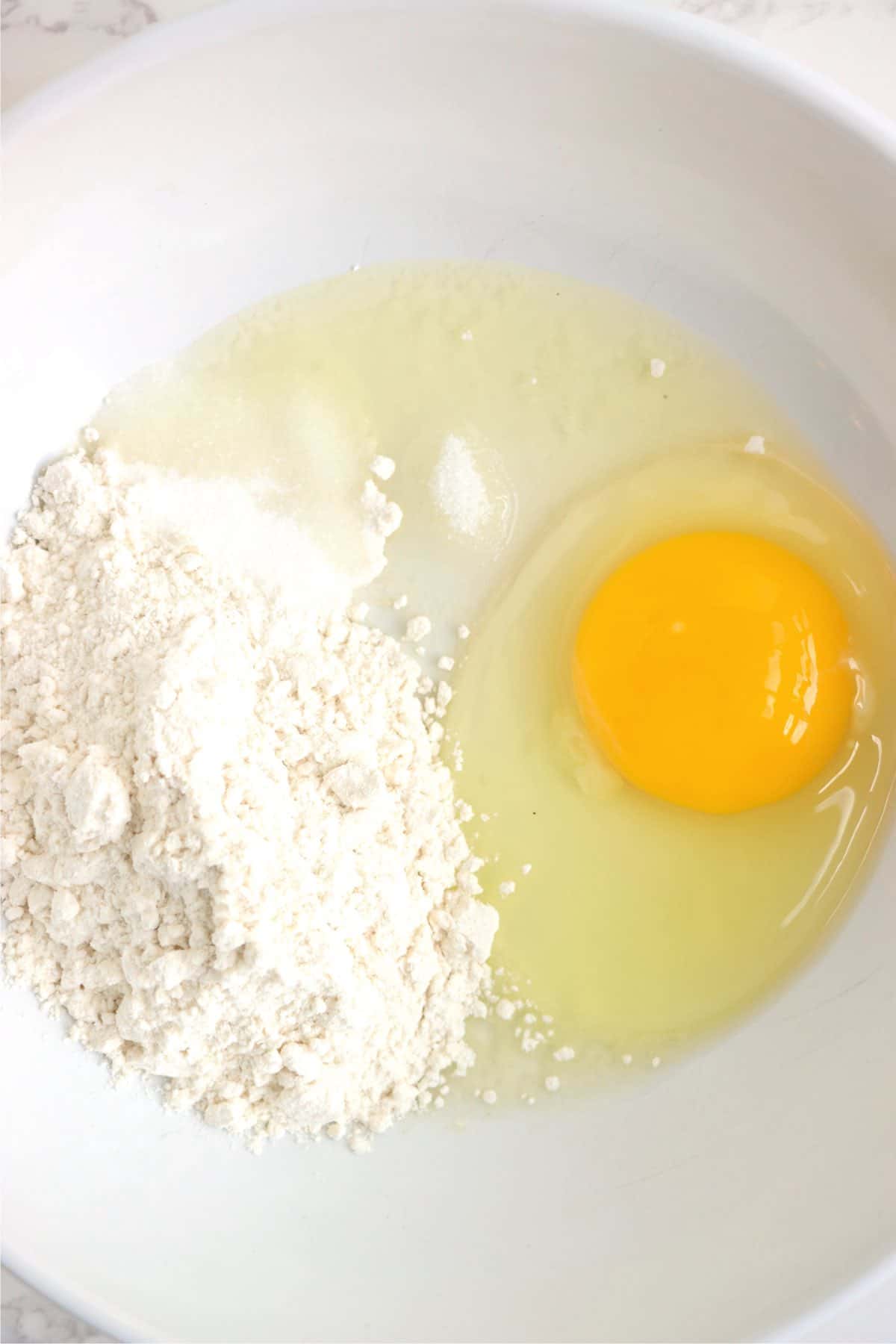 - In a small bowl, combine egg, flour, salt, and sugar. Whisk until smooth.