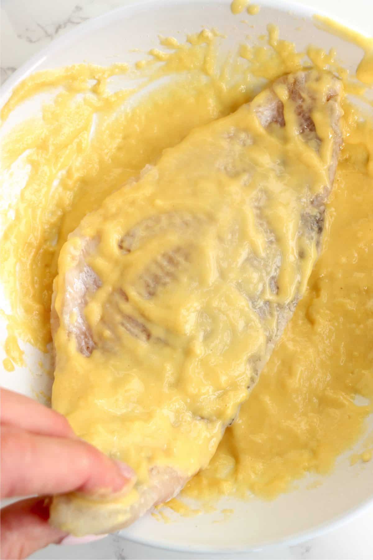 2: Dredge the catfish in the mixture to fully coat on both sides.