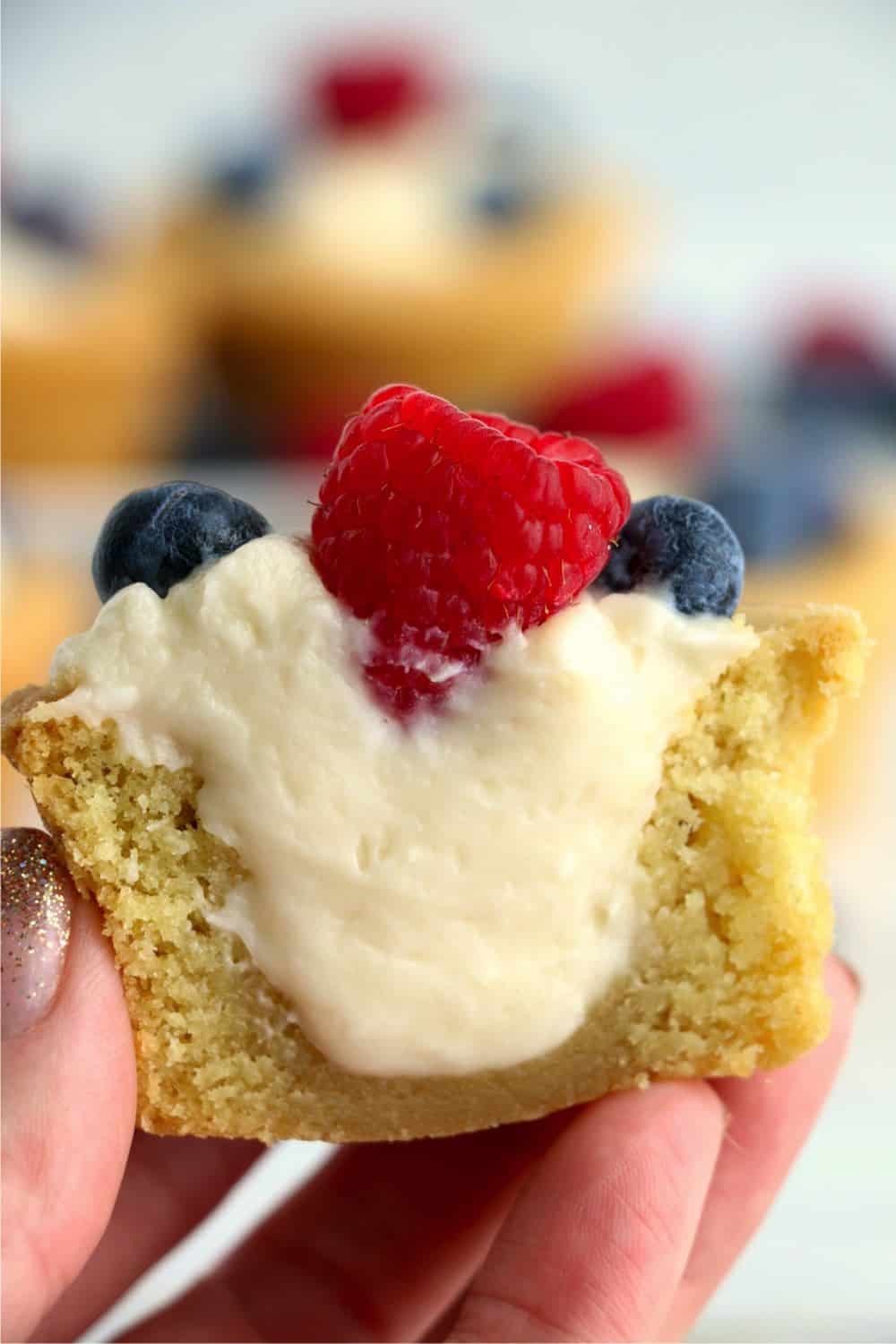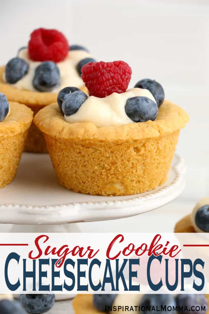 Cheesecake Sugar Cookie Cups are soft sugar cookies that are filled with a creamy and cheesecake filling then topped with fresh berries.