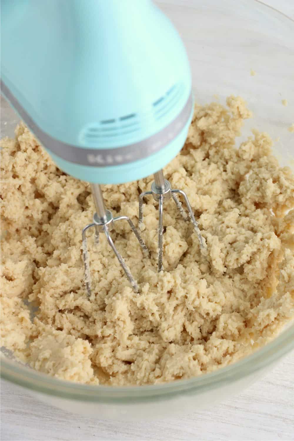 Step 5. In a separate bowl, stir together the flour, salt, baking soda, and cornstarch. Beat the dry ingredients into the wet ingredients until well combined. Dough will be very thick.