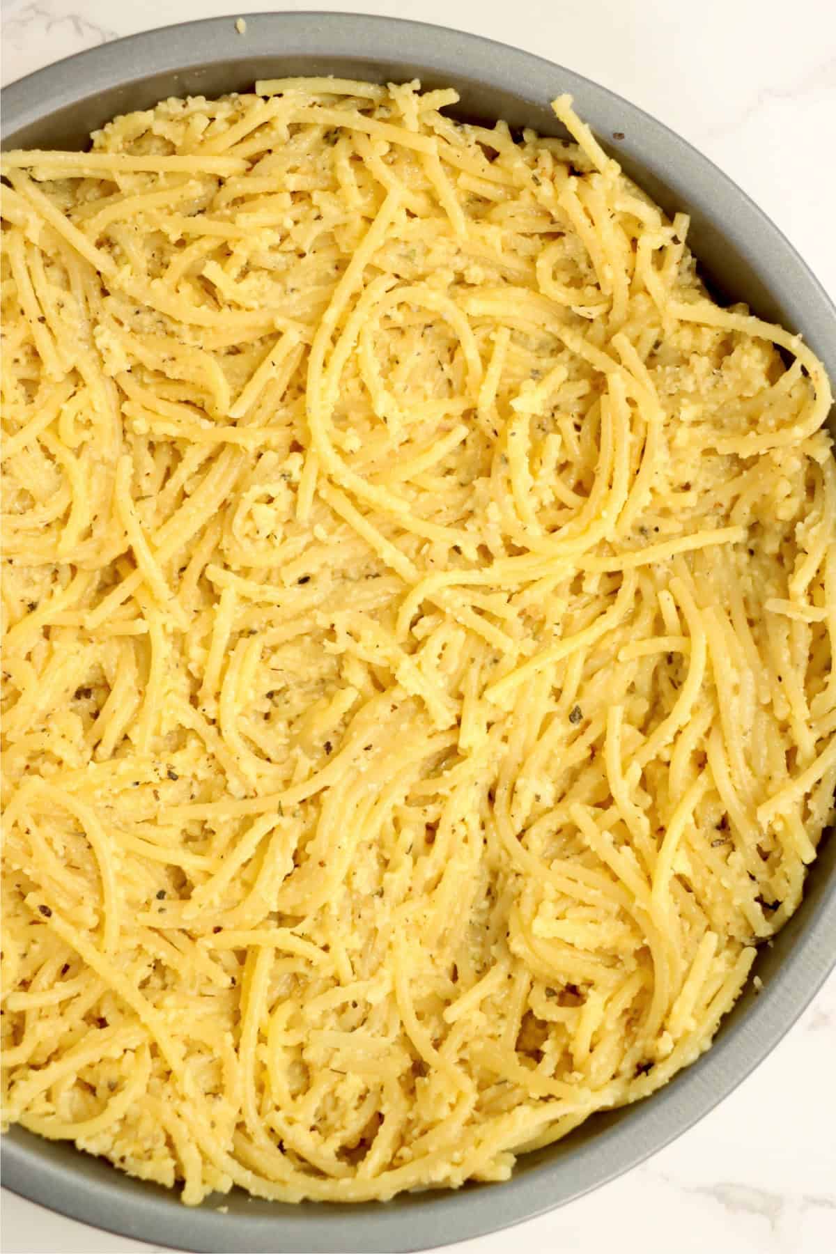 2: Mix the cooked spaghetti and remaining crust ingredients.