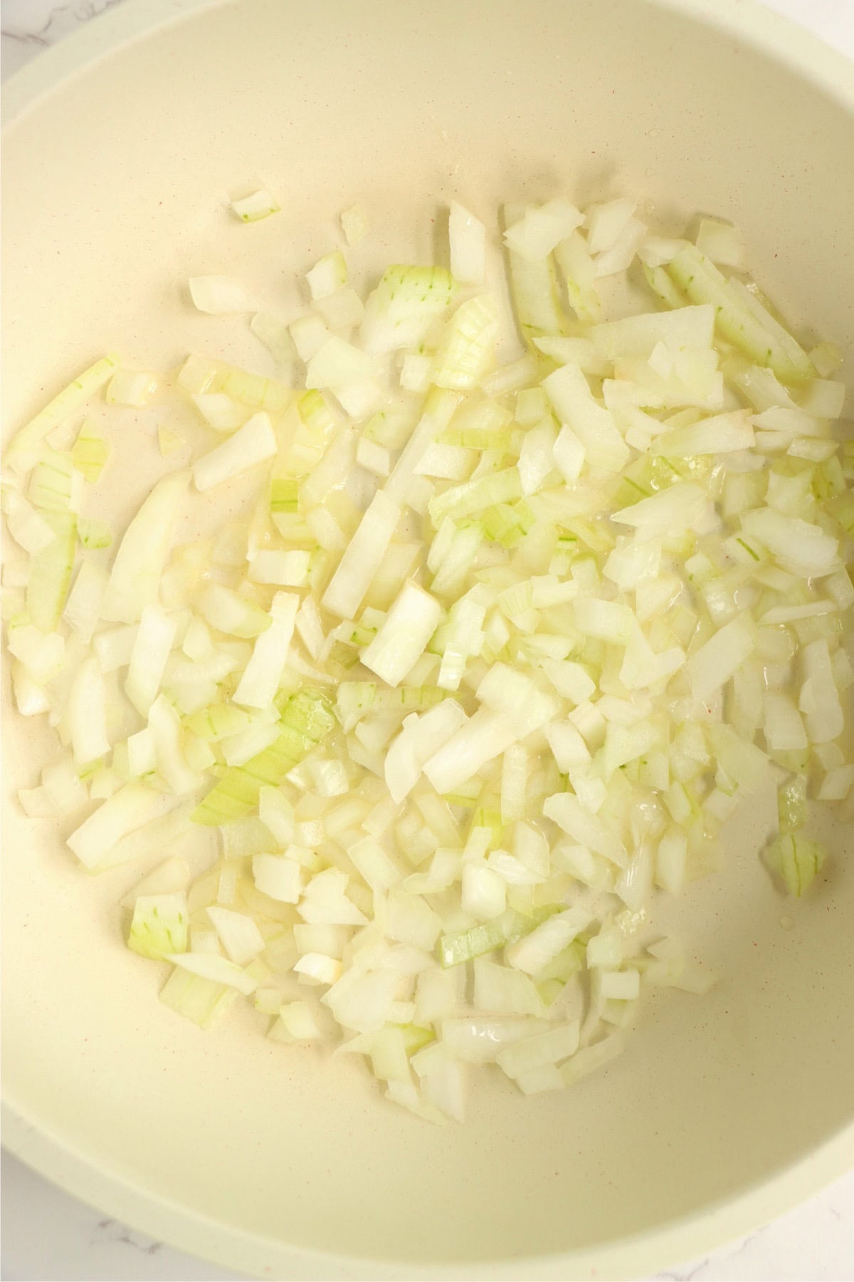 - Heat vegetable oil in a large skillet over medium heat. Add onions and cook for 3 minutes.