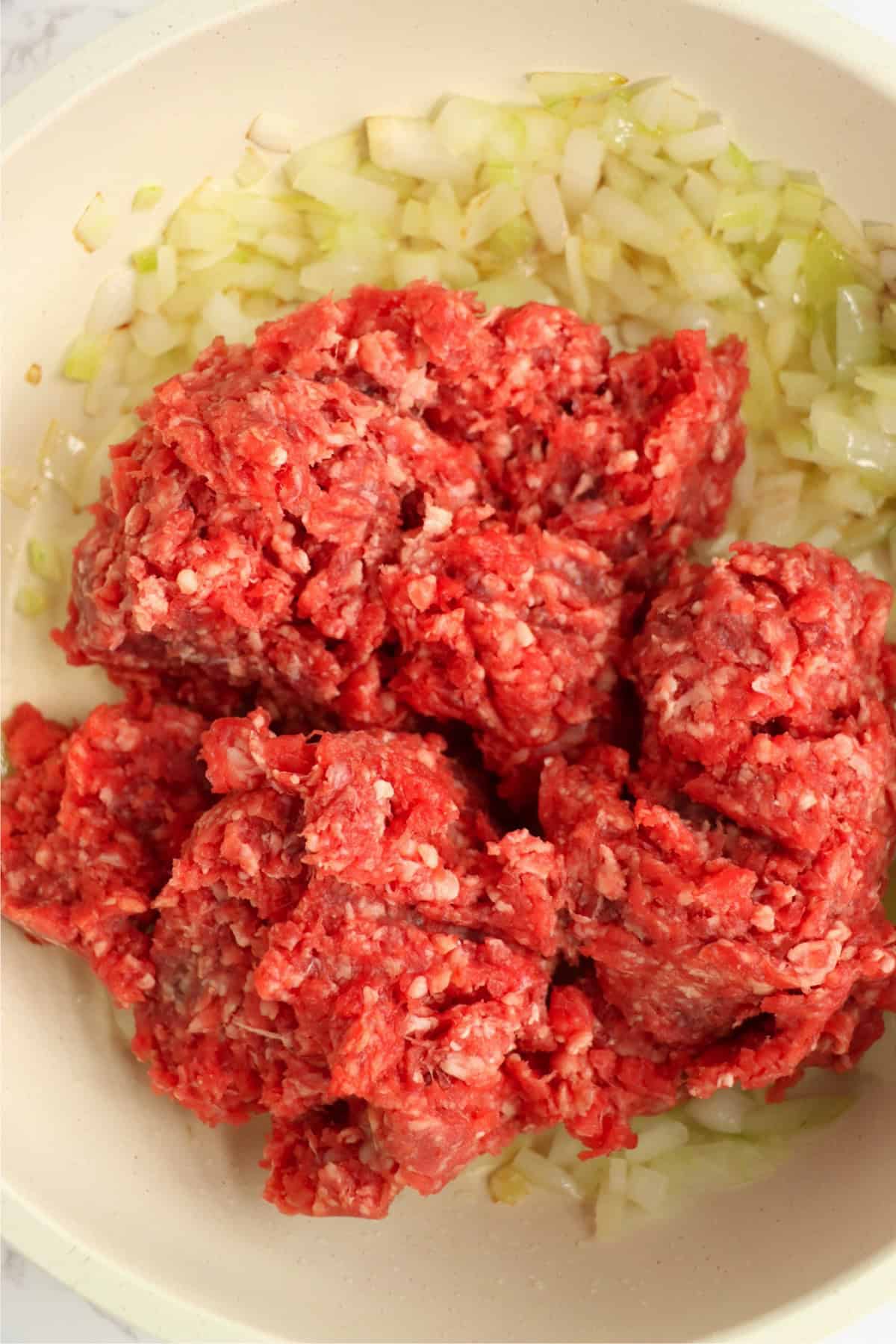 2: Add the ground beef and cook until no longer pink. Drain and return to the pan.