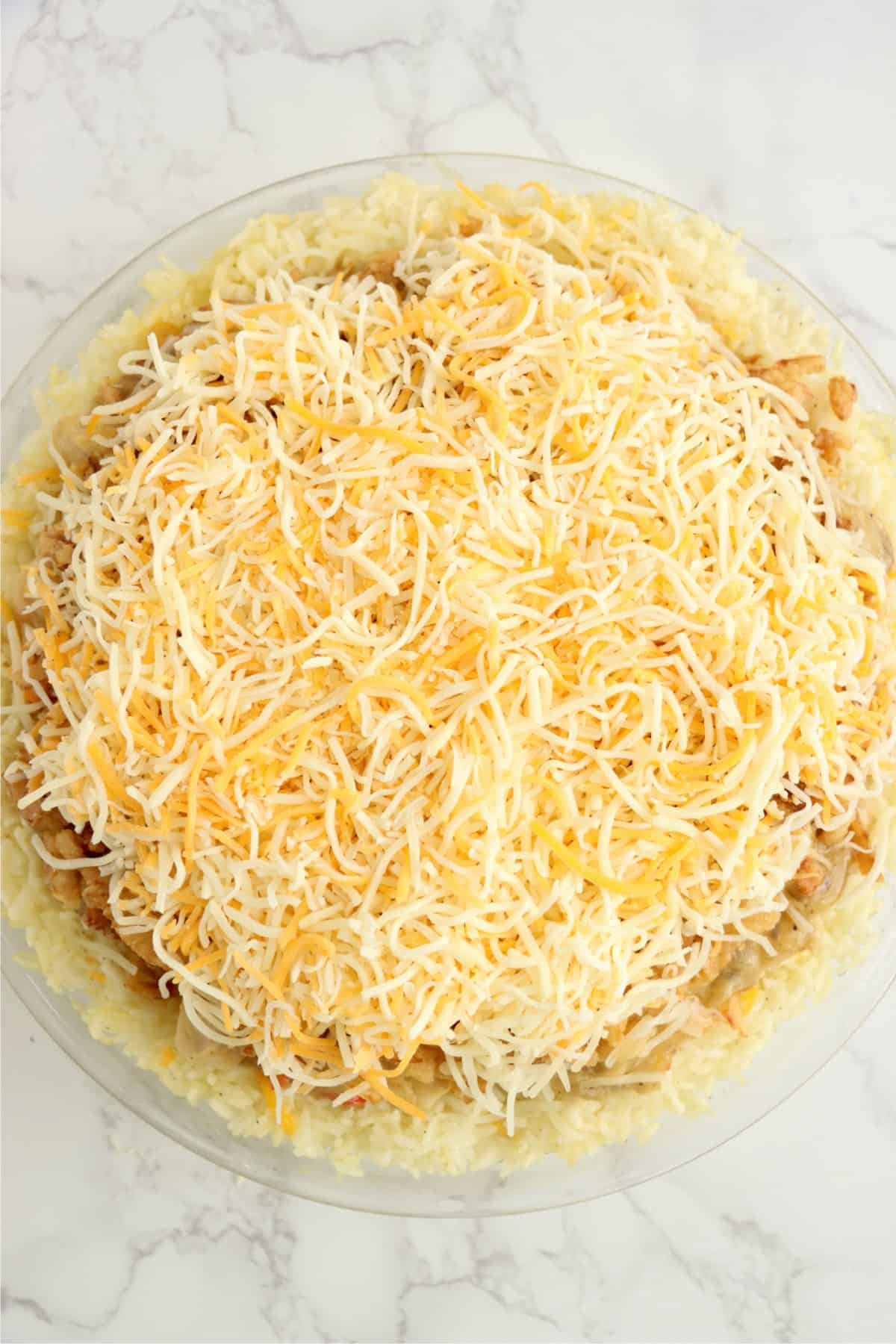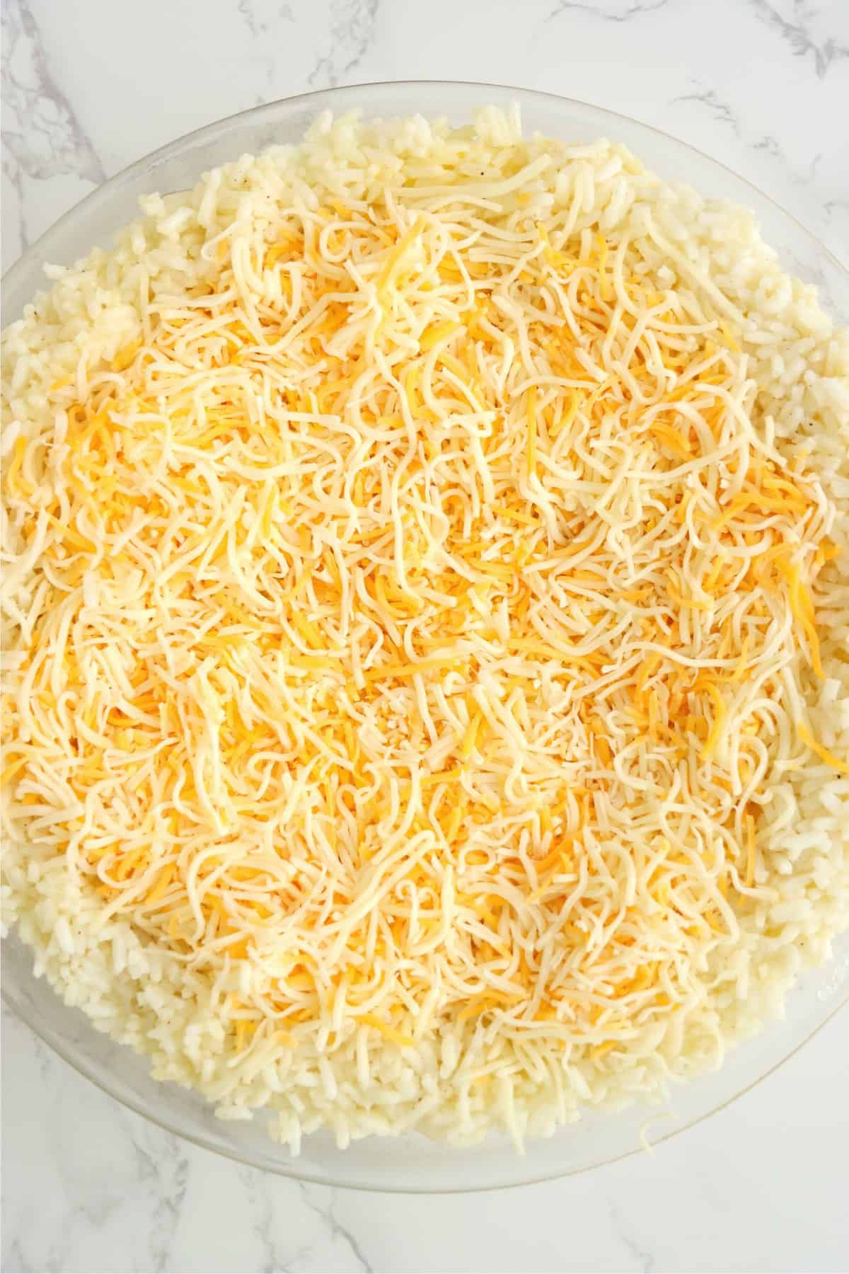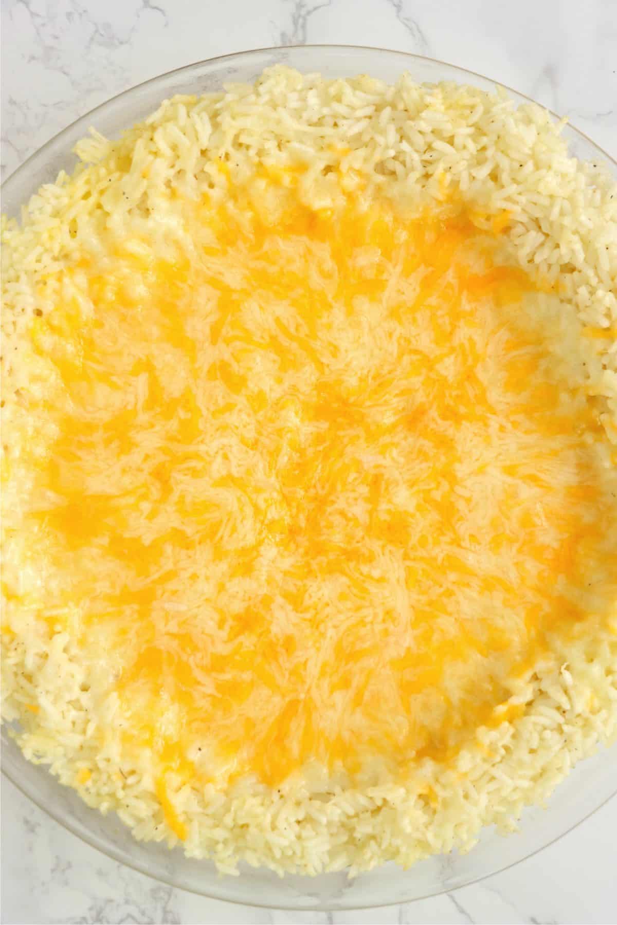 - Sprinkle shredded cheese over top of rice.