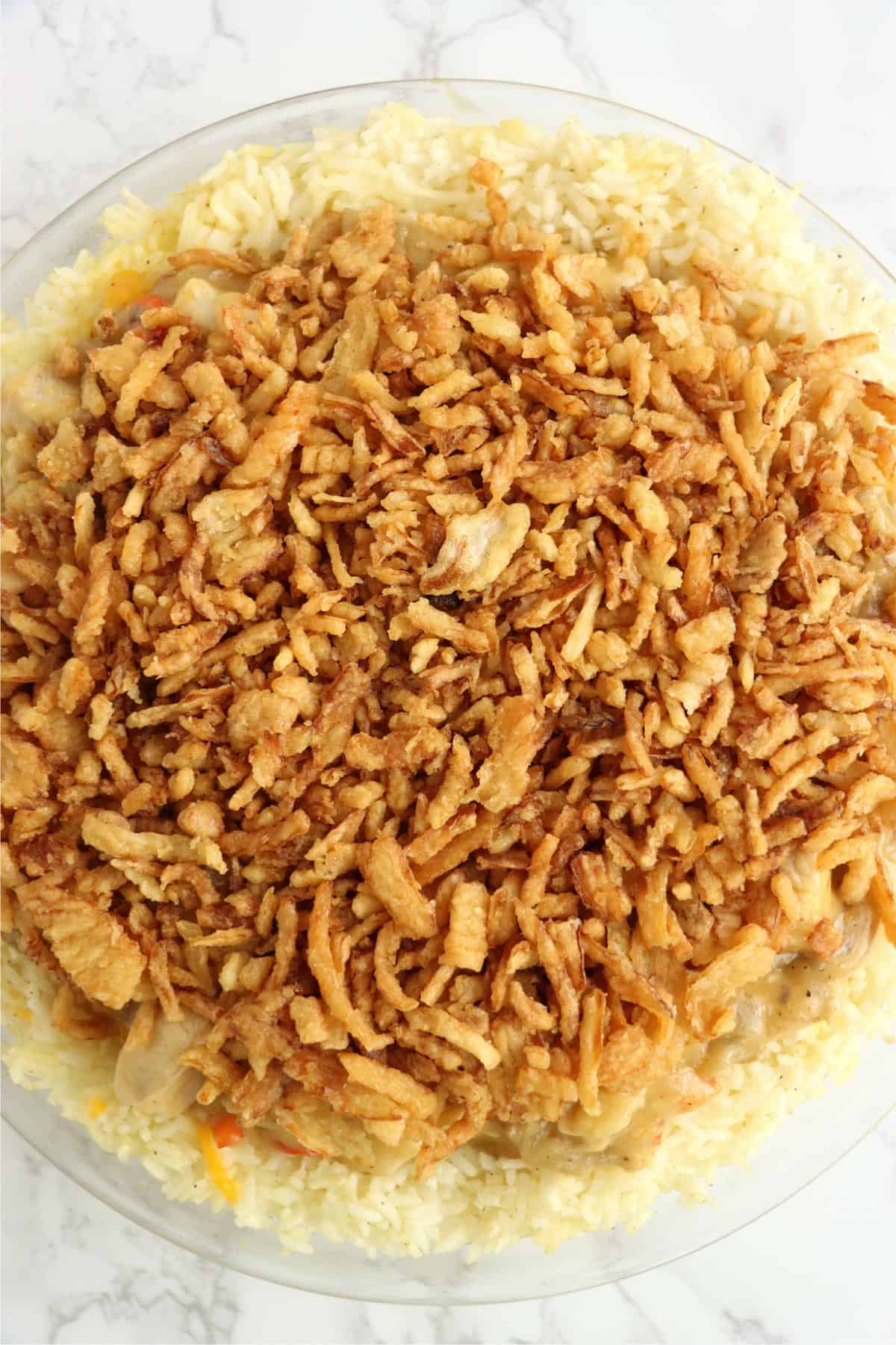 - Sprinkled French fried onions over top.