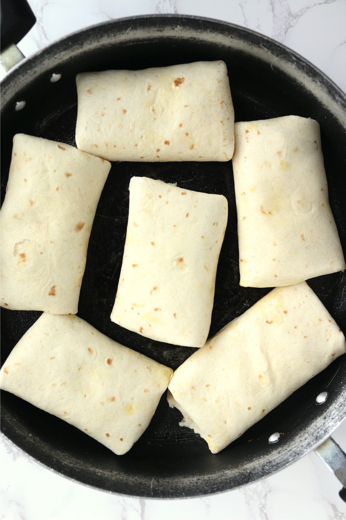 Step 9: Spray the tops of snack wraps and flip to cook the other side. Continue cooking until that side is golden brown.