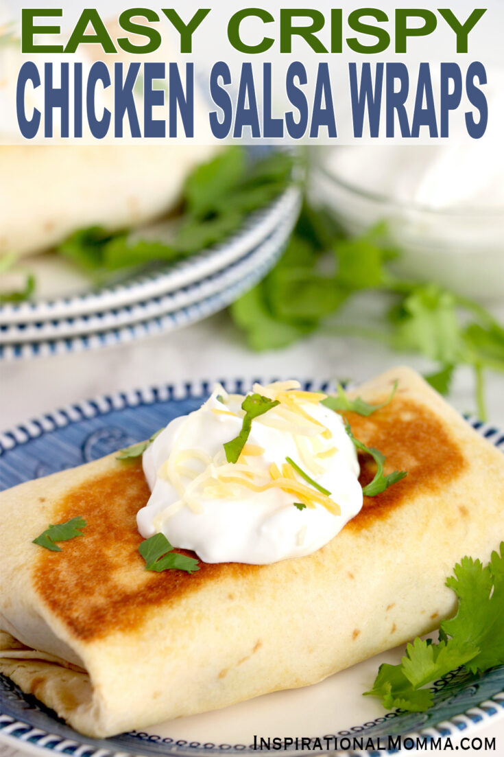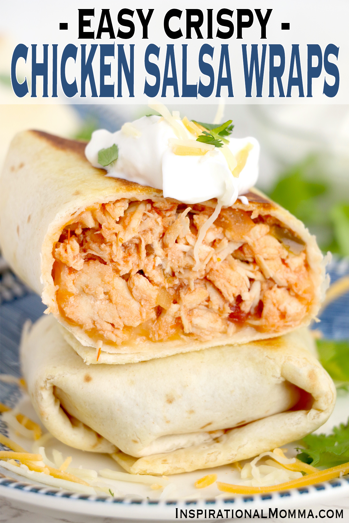 These delicious crispy chicken salsa wraps are loaded with tender chicken, salsa, cheese, sour cream, and cilantro. They're a delicious addition to any party, Taco Tuesday, or family meal.