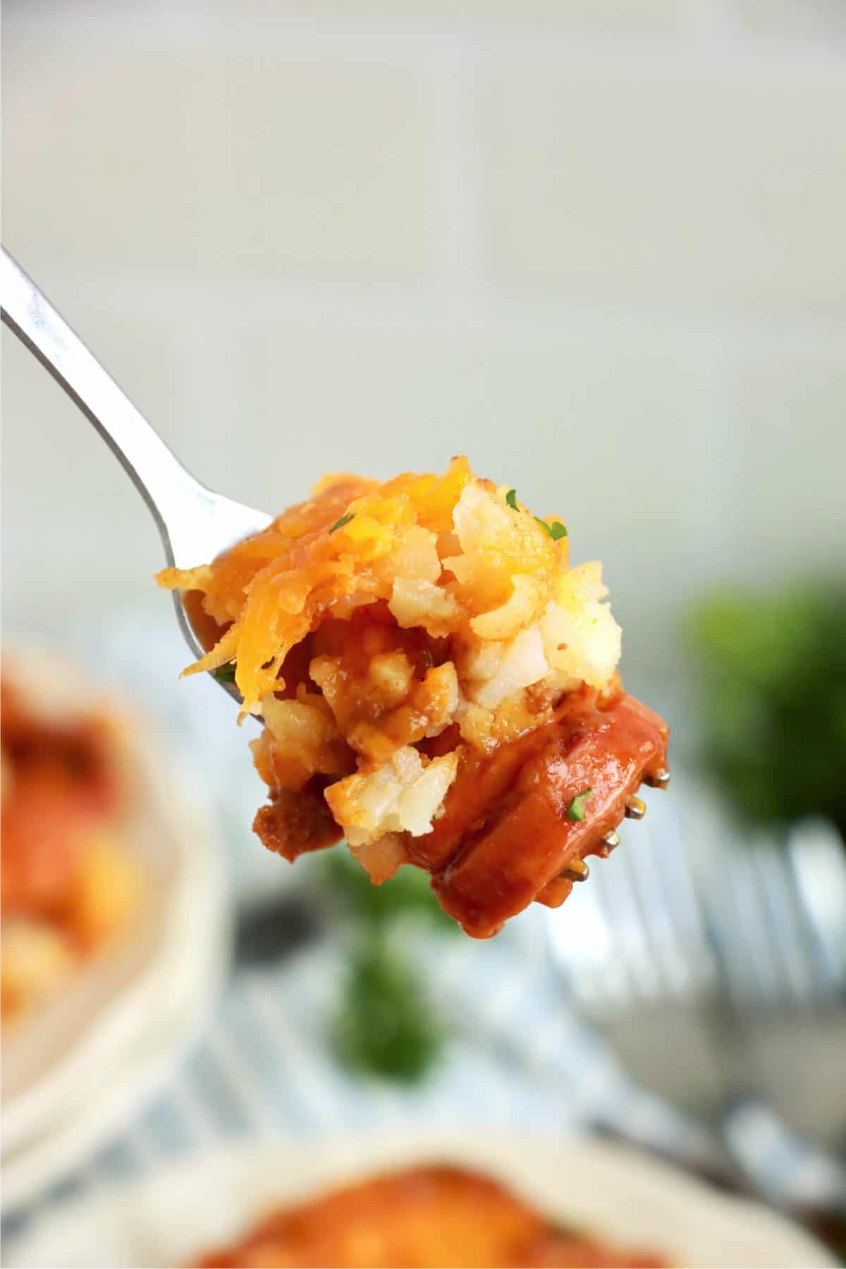 Chili Cheese Tater Tot Hot Dog Casserole
