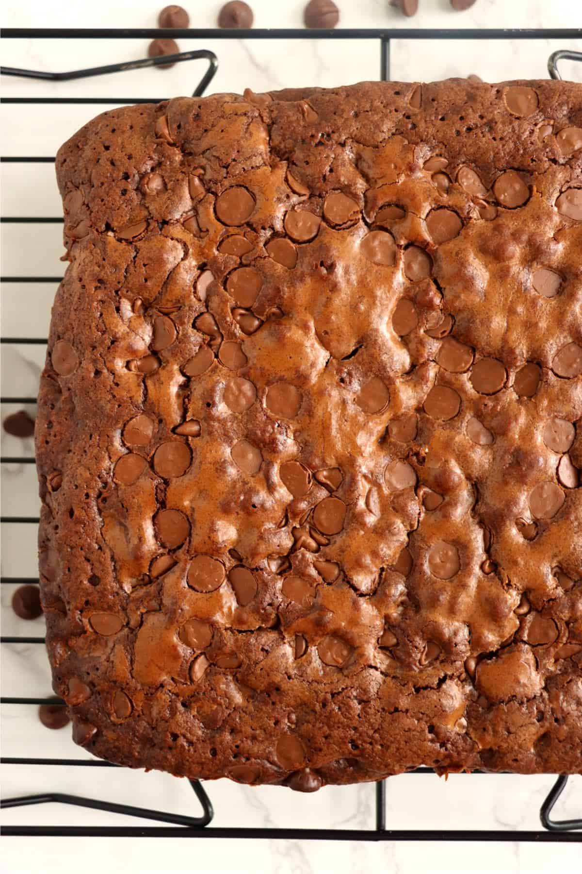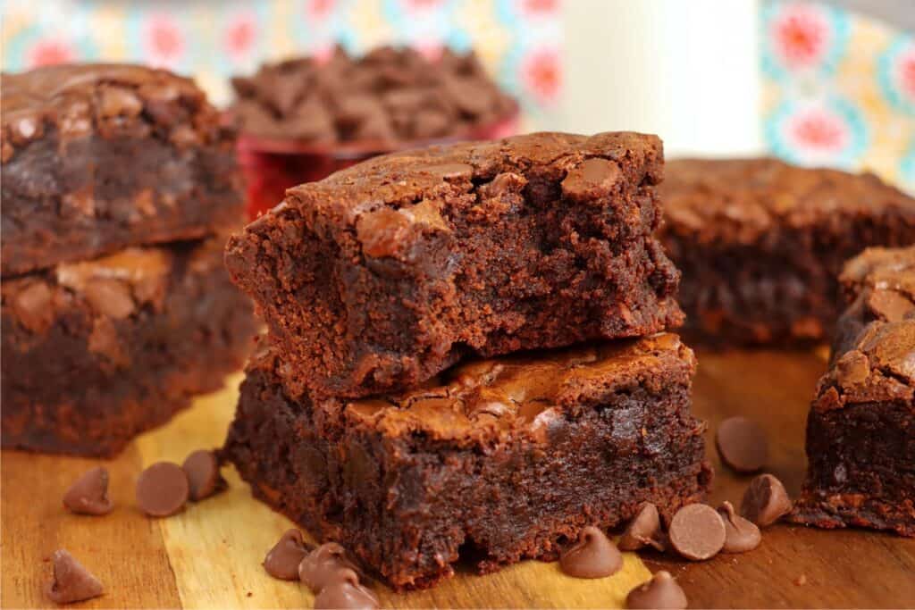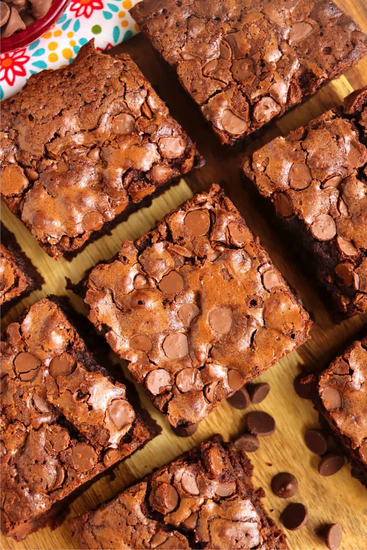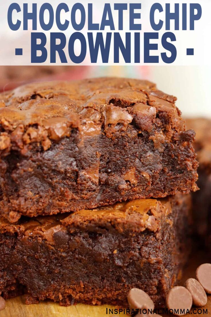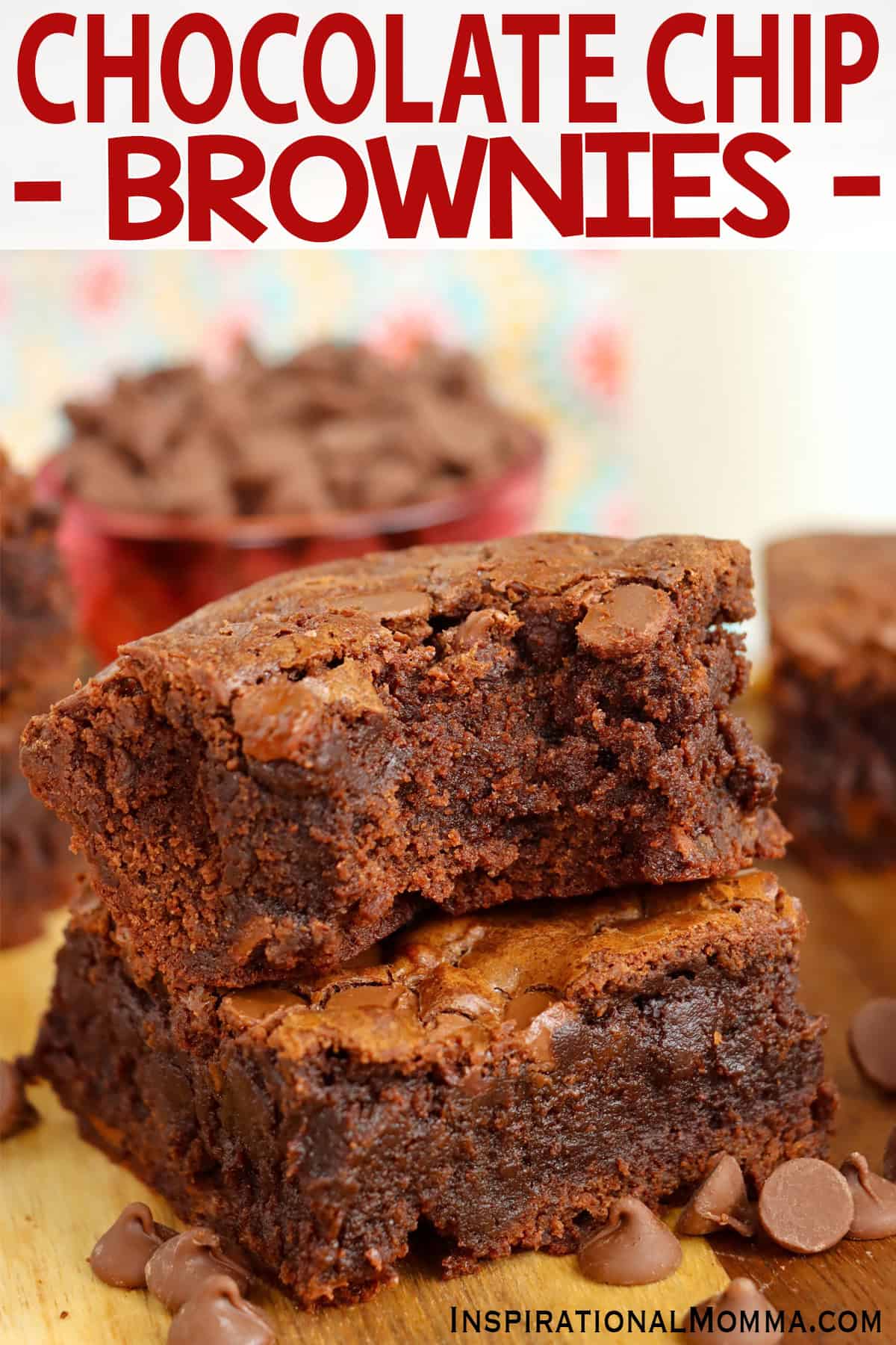 Chocolate chip brownies take the classic moist, chewy, fudgy brownie flavor and texture we all love and adds a shot of extra chocolate deliciousness with chocolate chips folded into the batter and sprinkled on top before baking.