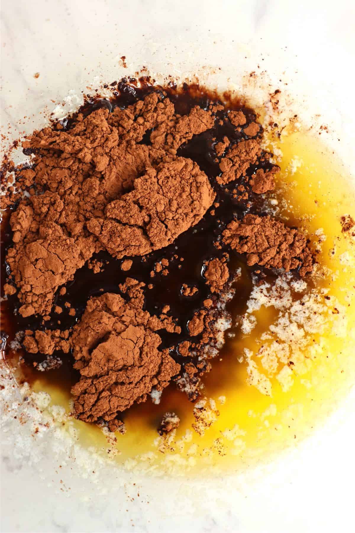 - Add cocoa powder and vanilla to browned butter. Whisk until smooth.