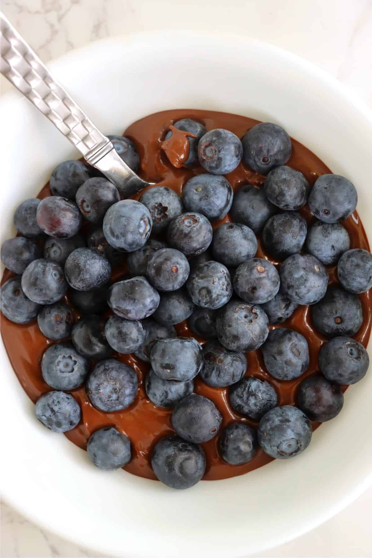 - Let the chocolate cool a bit before adding the blueberries so they don't begin to cook.