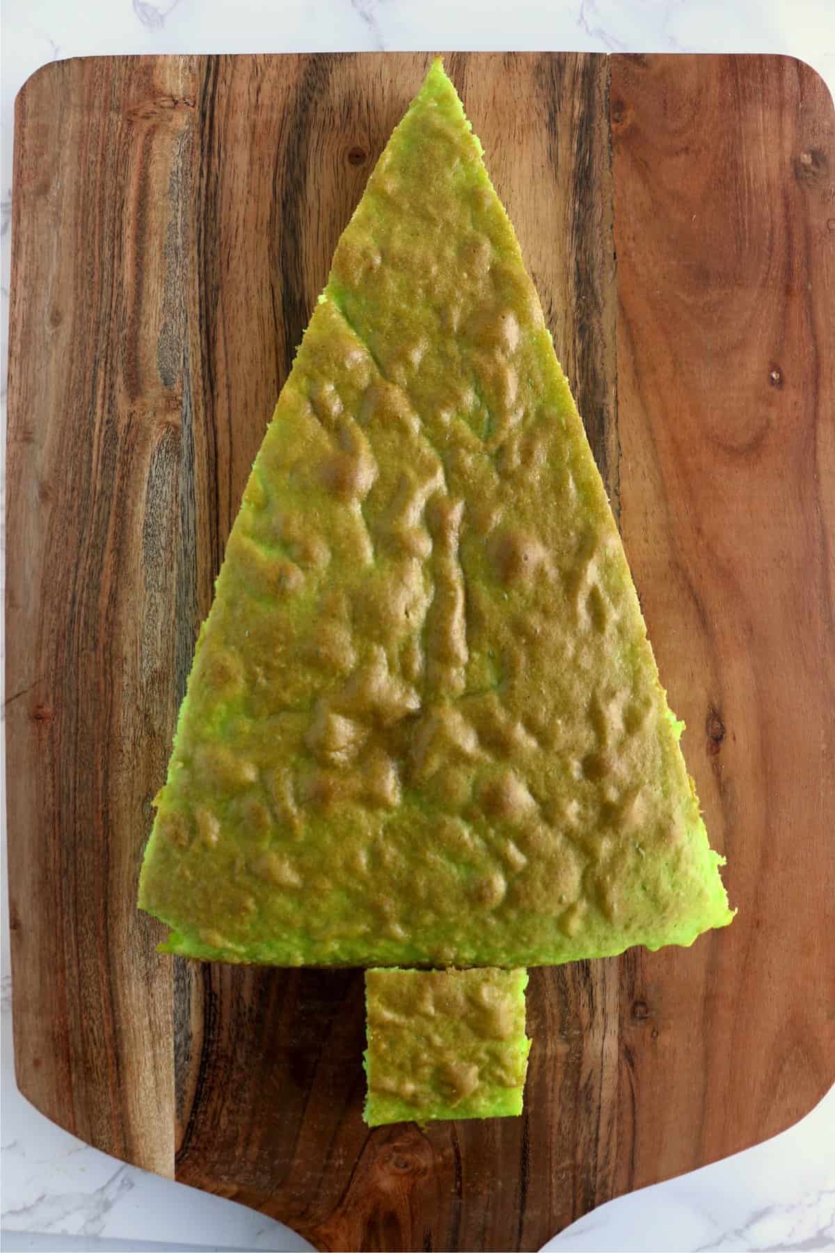 Step 8: Using a sharp knife, cut cake into a tree shape.