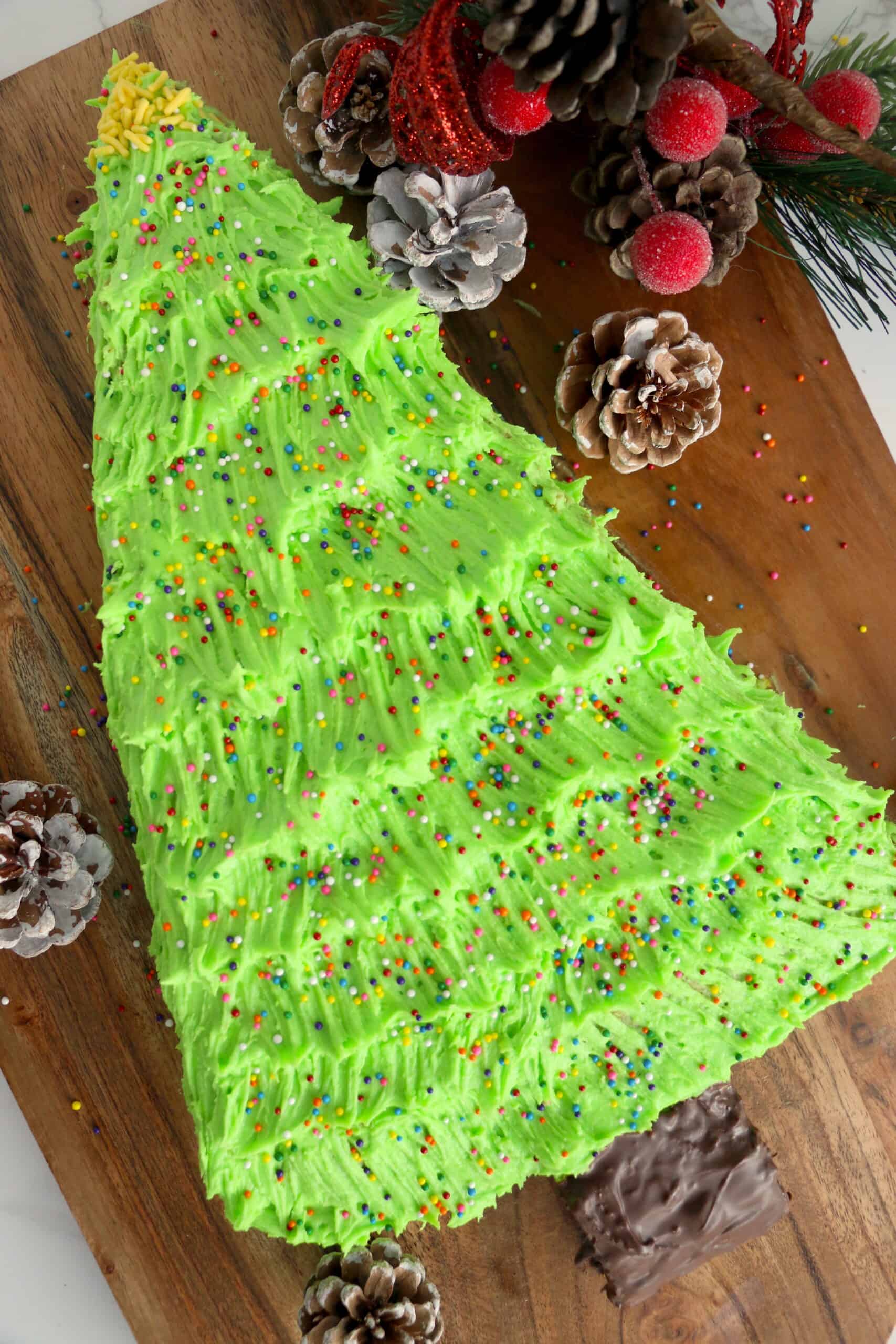 This Christmas Tree Cake will be the centerpiece of your holiday dessert table. It's easy to make, and it looks like a festive tree! It's perfect for any occasion - from potlucks to office parties.