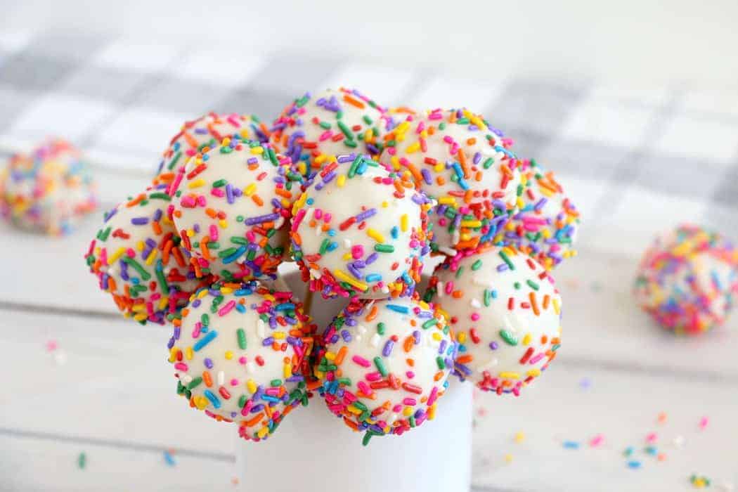 Make every day a celebration with this quick, easy-to-make Confetti Cake Pop Recipe! Kids of all ages will love to make these sweet, delicious treats!