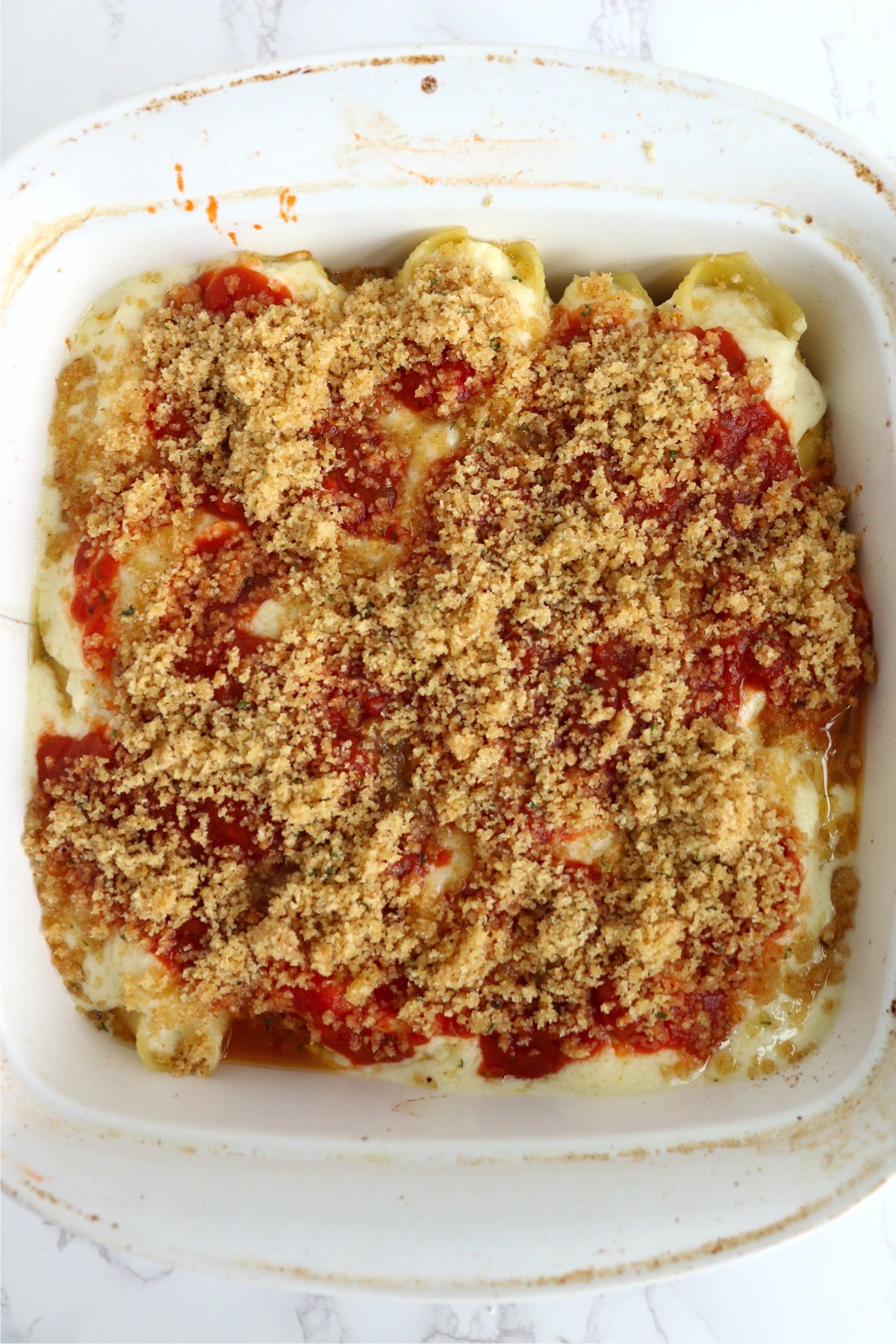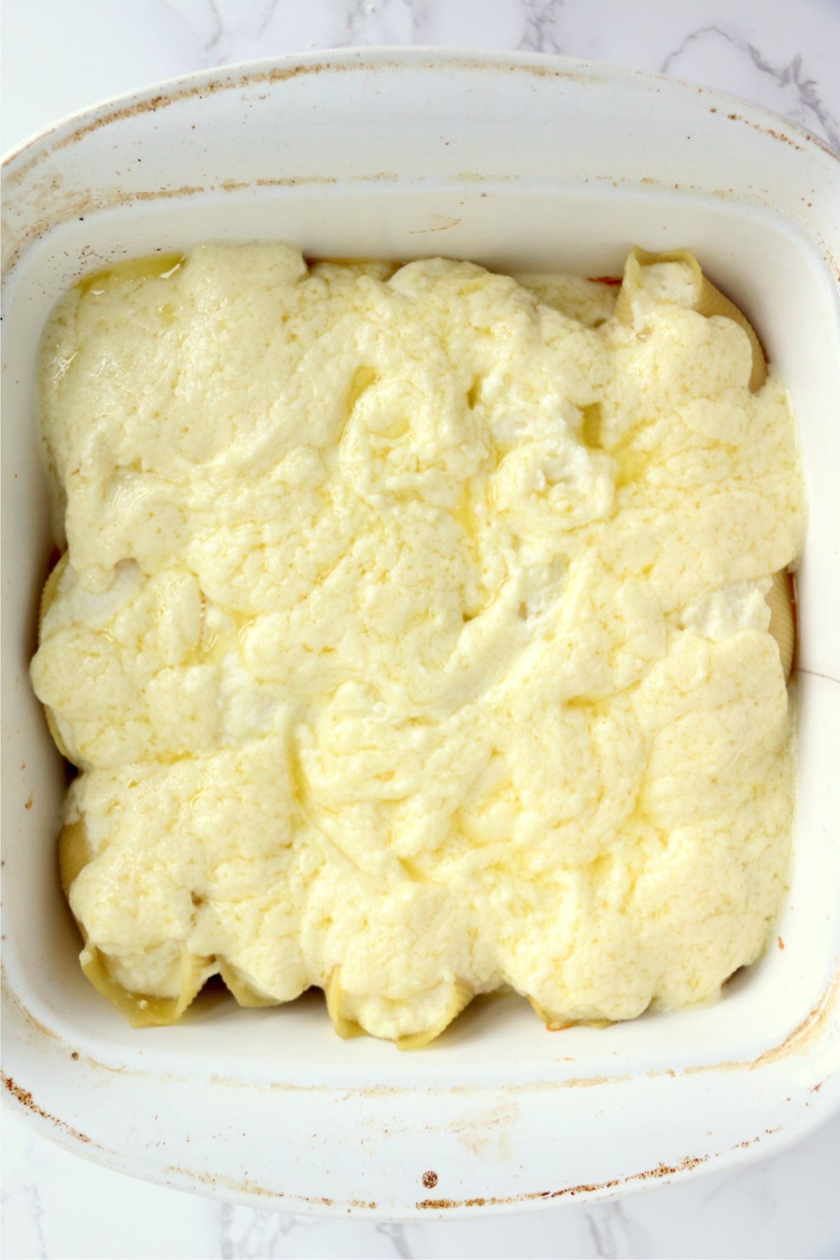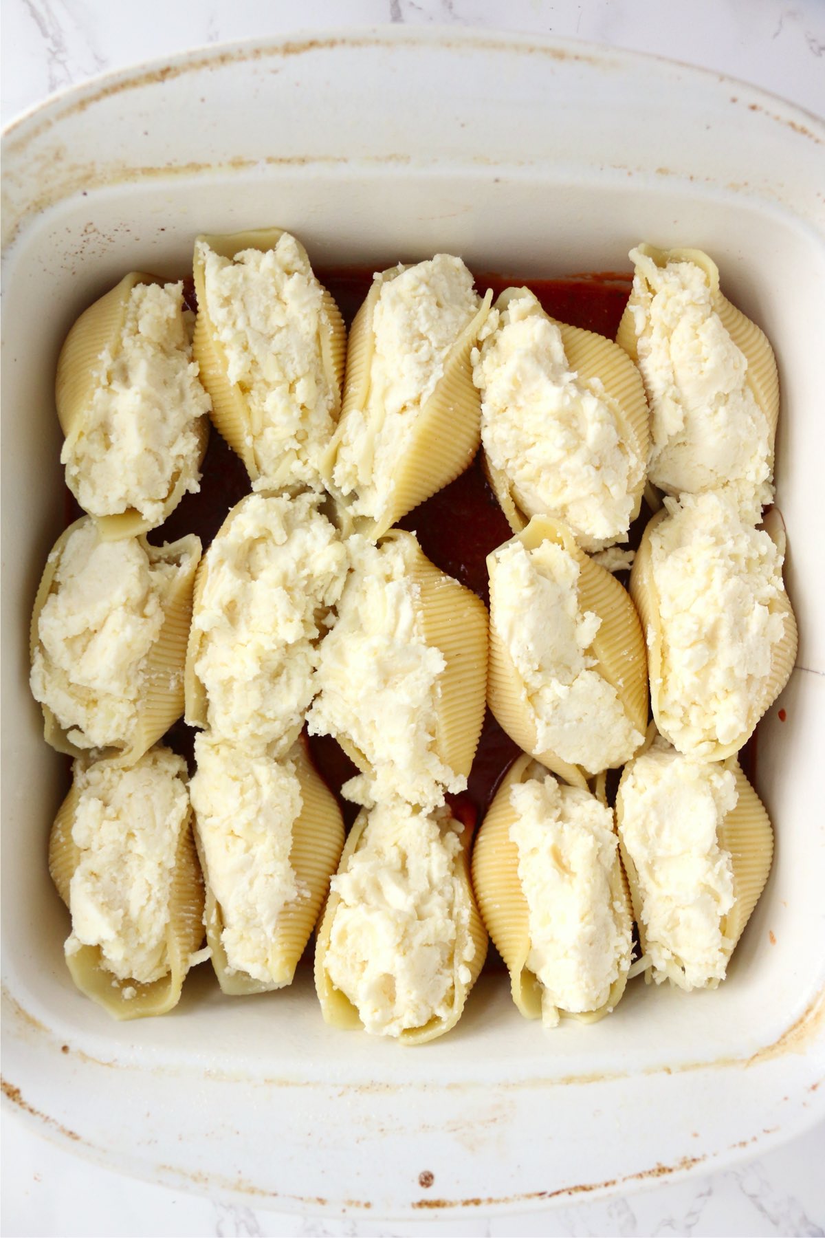 - Be sure you make the bottom layer of sauce nice and thick so the shells don't stick or burn.