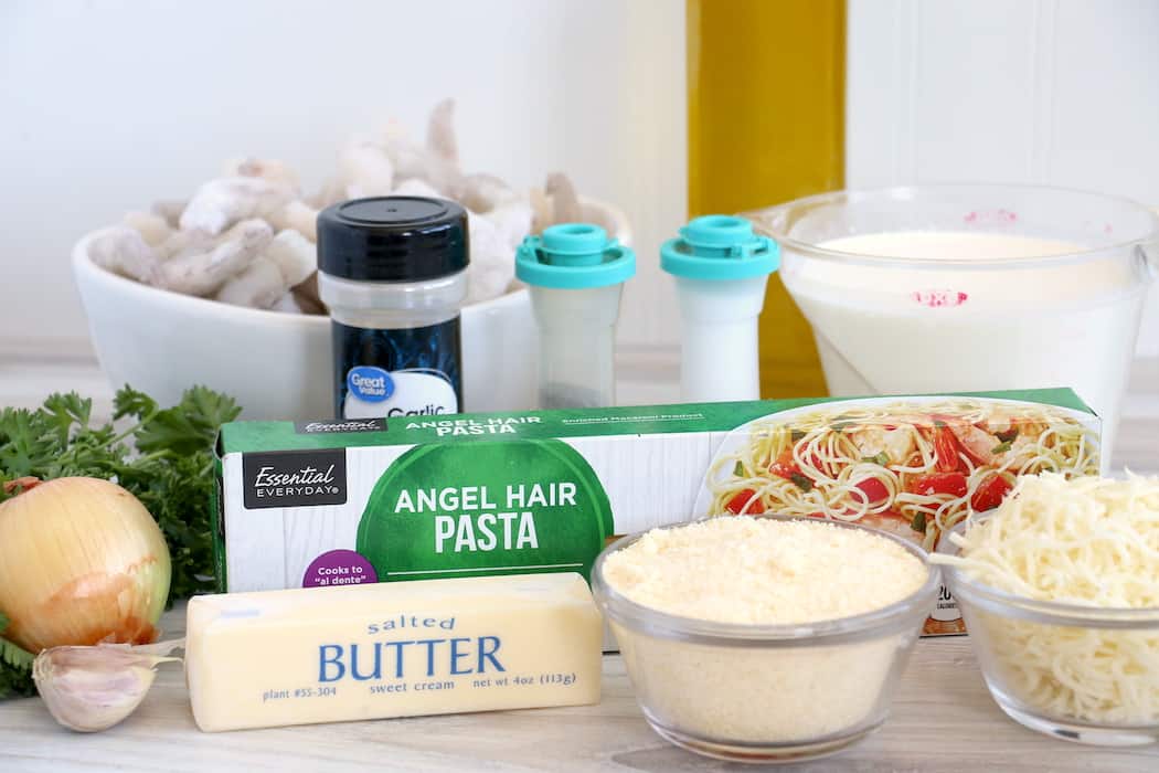 Anyone who knows me well, knows that my #1 choice on any menu is Shrimp Alfredo. First of all, pasta is my weakness. I do believe that I could eat noodles everyday for the rest of my life. The possibilities are endless when it comes to sauces, meats, cheeses, etc. But, if I had to choose just one, this Creamy Shrimp Pasta would easily be at the top of my list.Ingredients for Creamy Shrimp Pasta