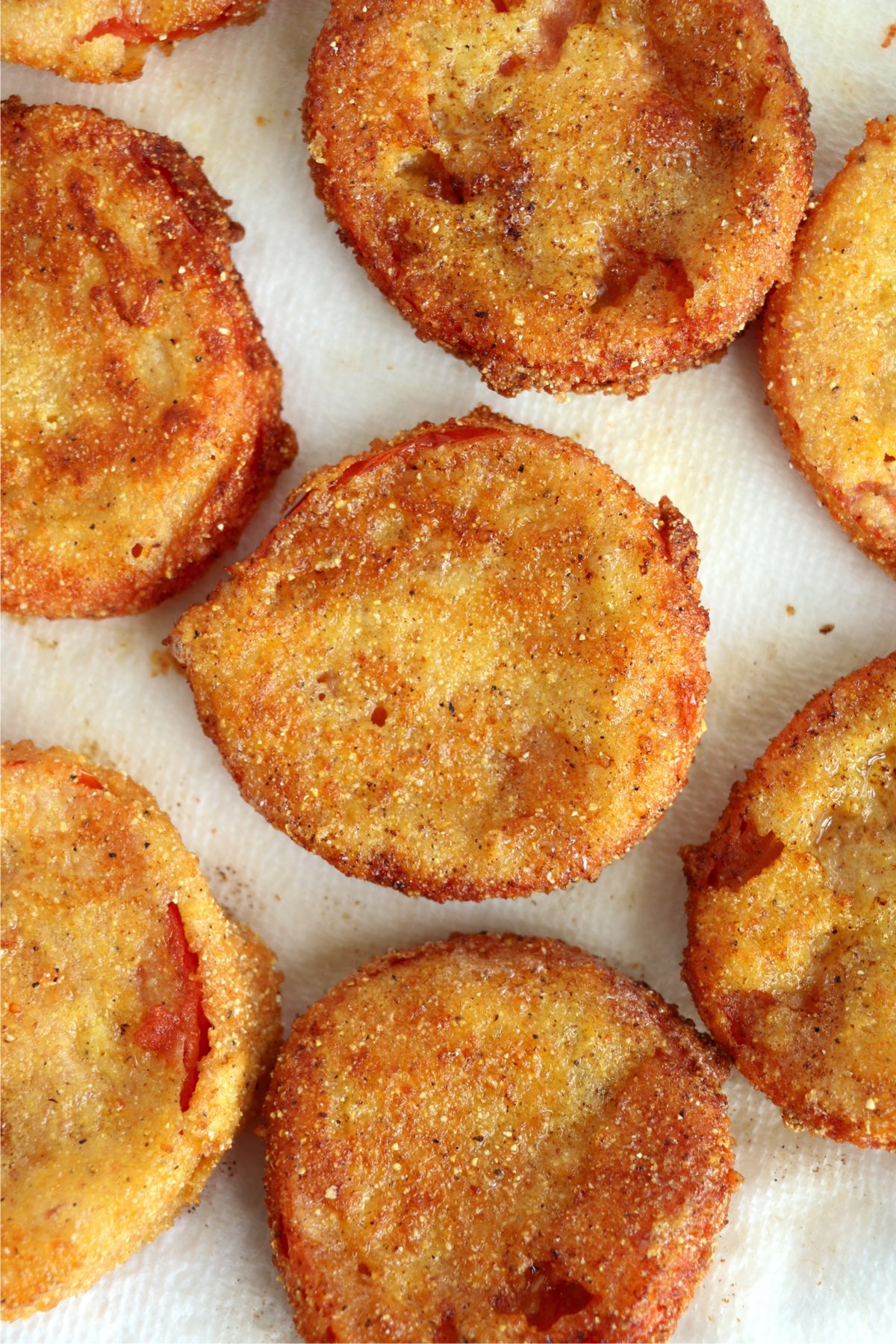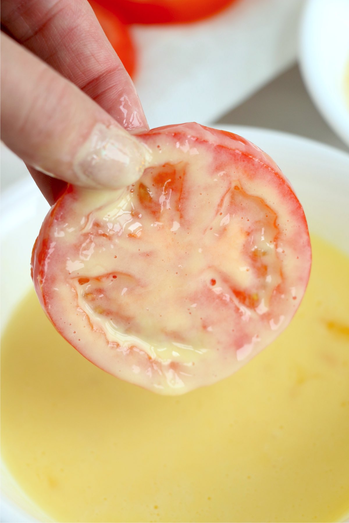 - Gently tap the tomato slices when dredging them to remove any excess batter.
