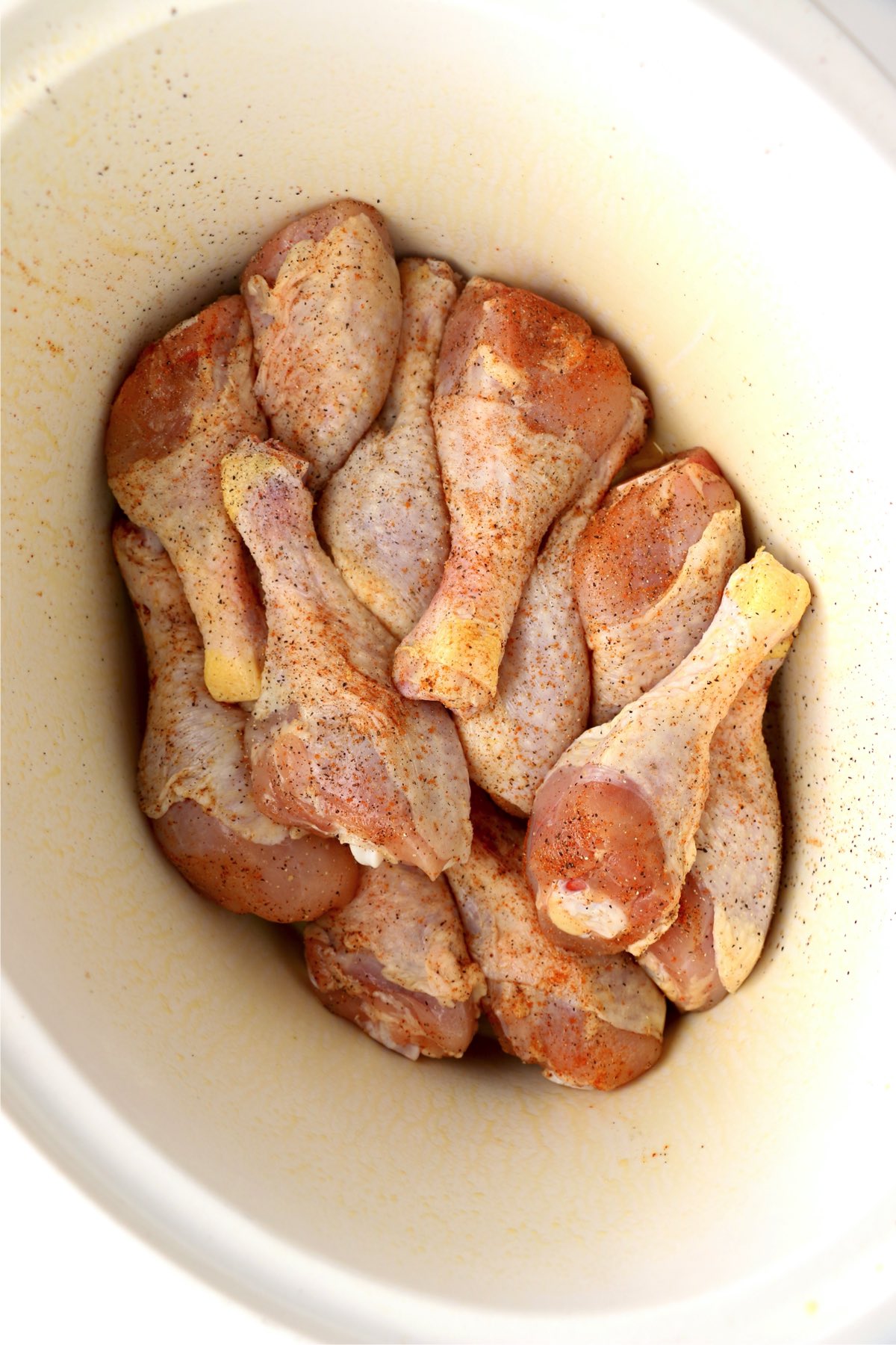 - Place seasoned drumsticks in your greased crock pot.