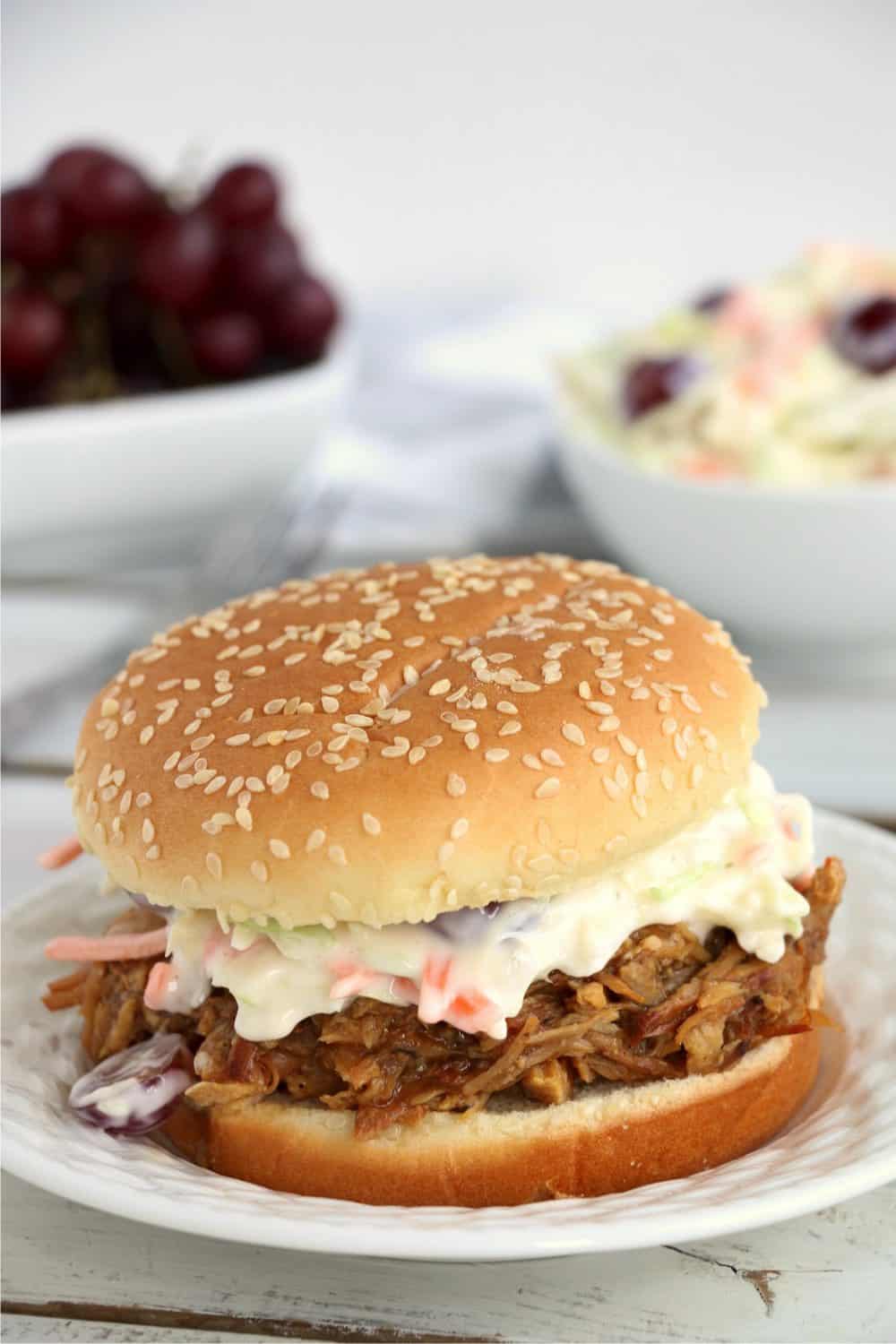 Crock Pot BBQ Pulled Pork is a delicious way to feed a crowd. It takes just minutes to prepare and is tender, flavorful, and irresistible! Perfect for any meal at home or great for a summer BBQ, too!