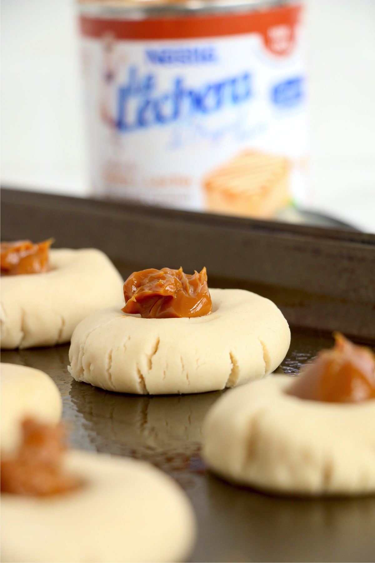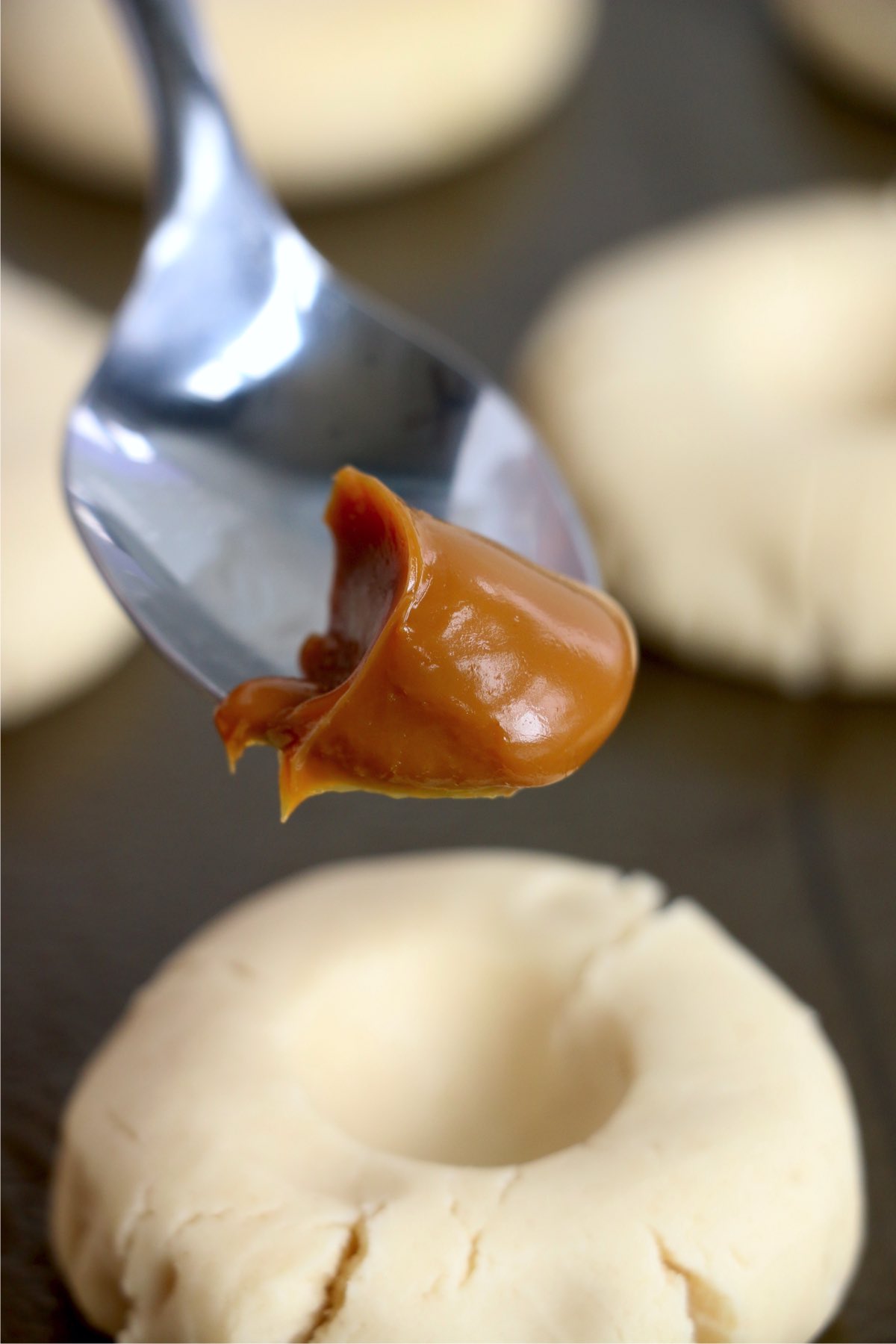 - Don't overfill your cookie divot with dulce de leche. You want it on the cookie, not the baking sheet.