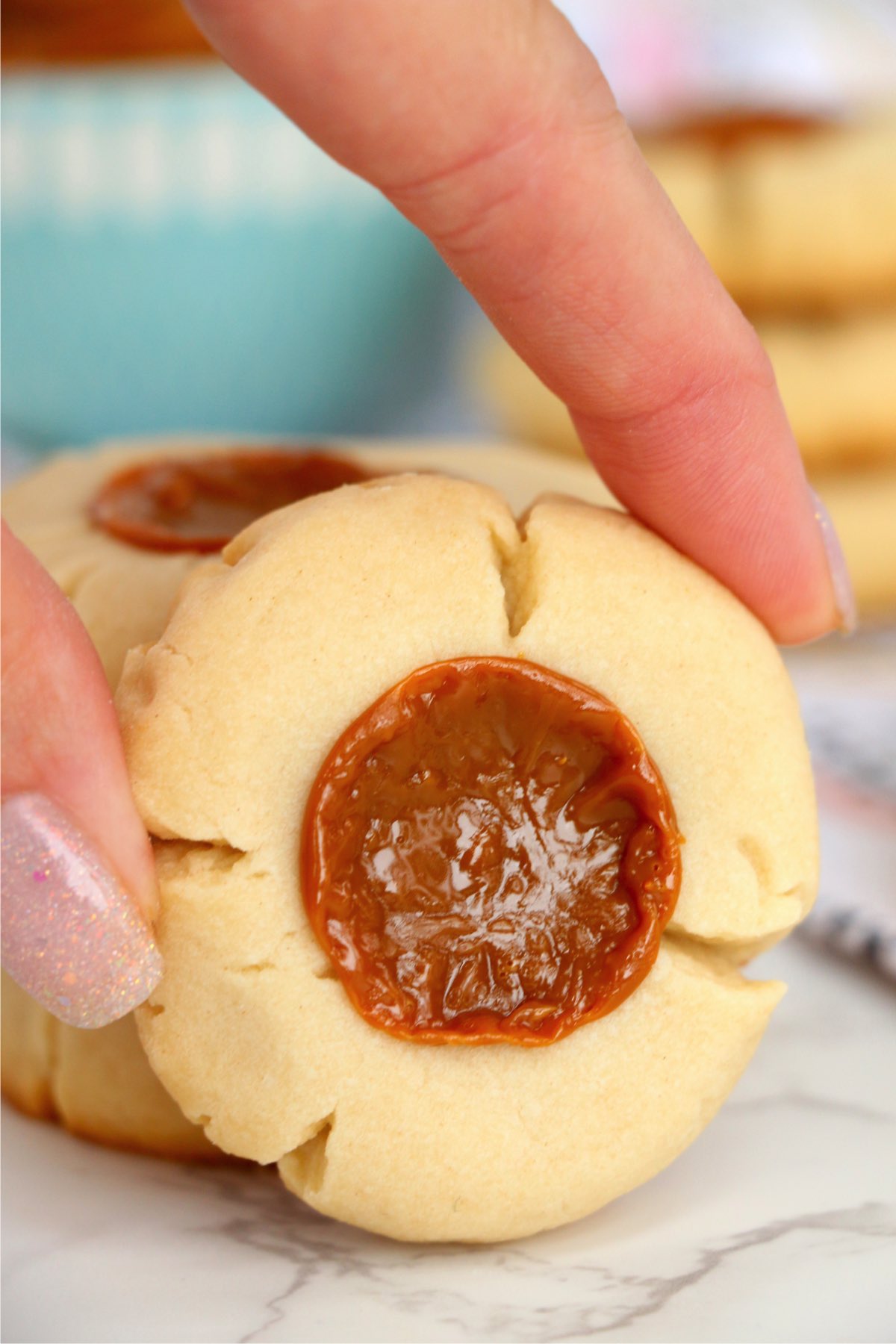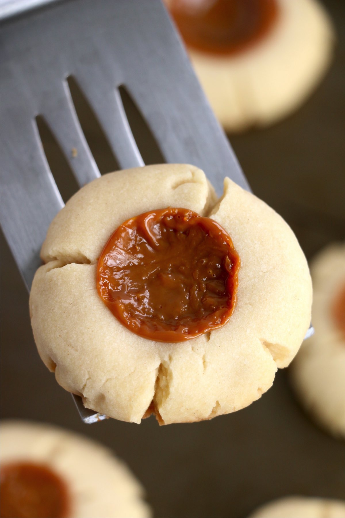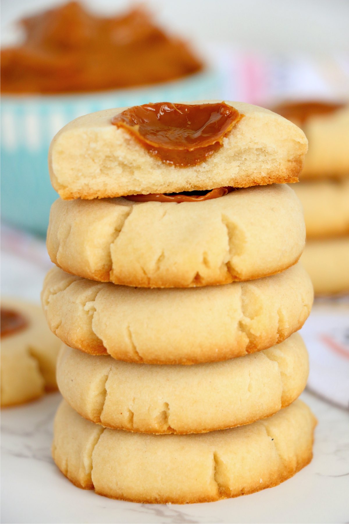 What could be better than a rich, buttery cookie? Why, a rich, buttery cookie topped with rich, sweet dulce de leche, of course. And that's just what you get with these cookies!