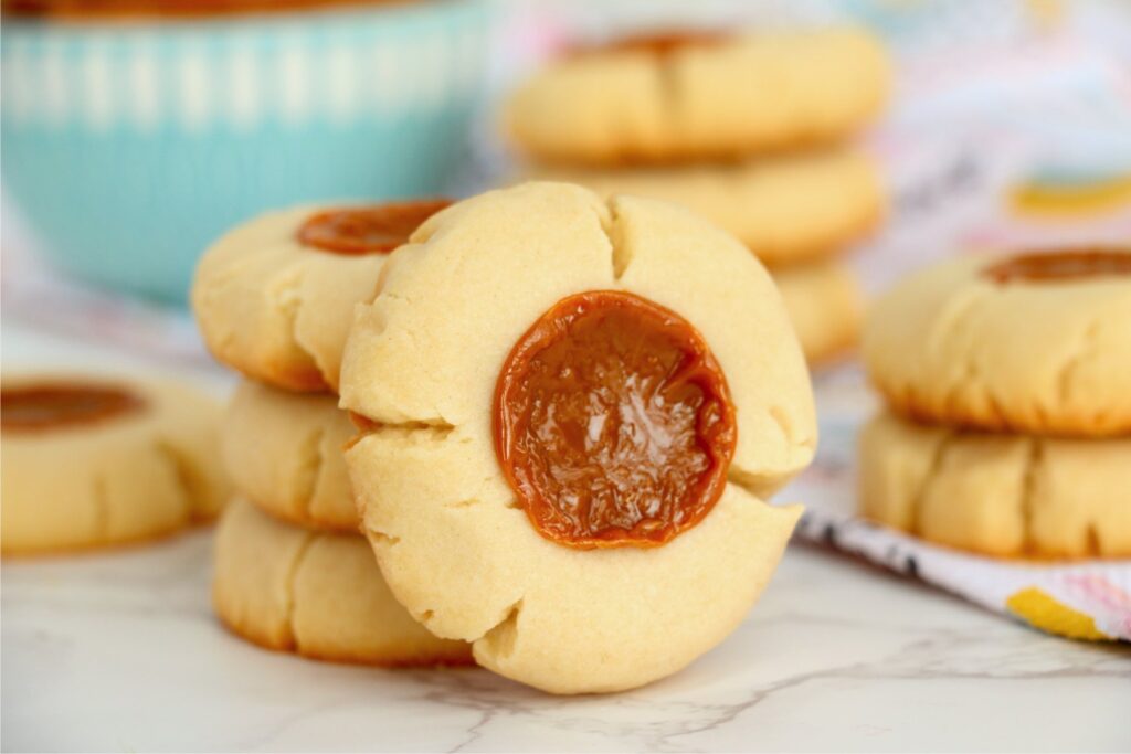 These dulce de leche cookies are golden and delicious. A simple cookie base is topped with decadent dulce de leche to create a cookie that will have everyone's mouth watering.