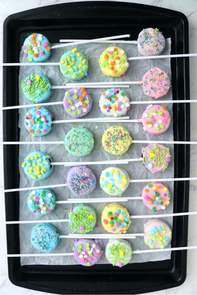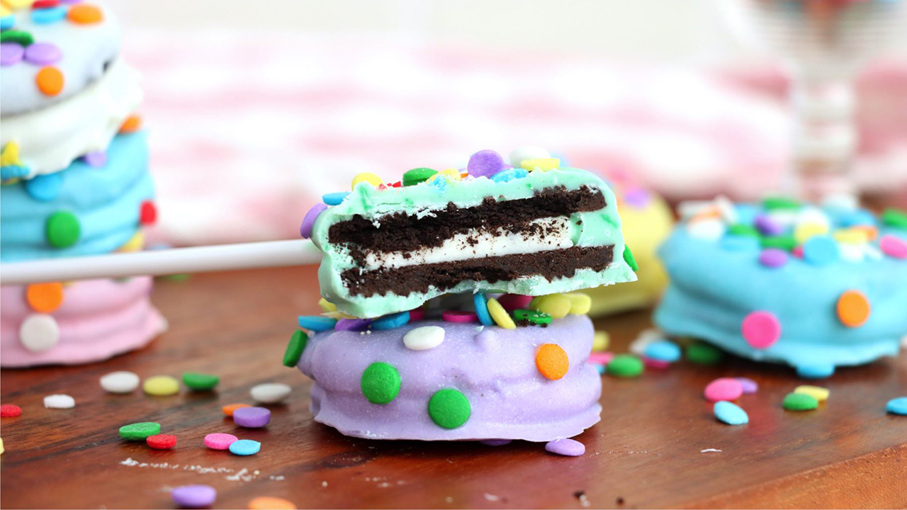 - The Oreo flavor combined with the pastel coating makes the perfect Easter treat.