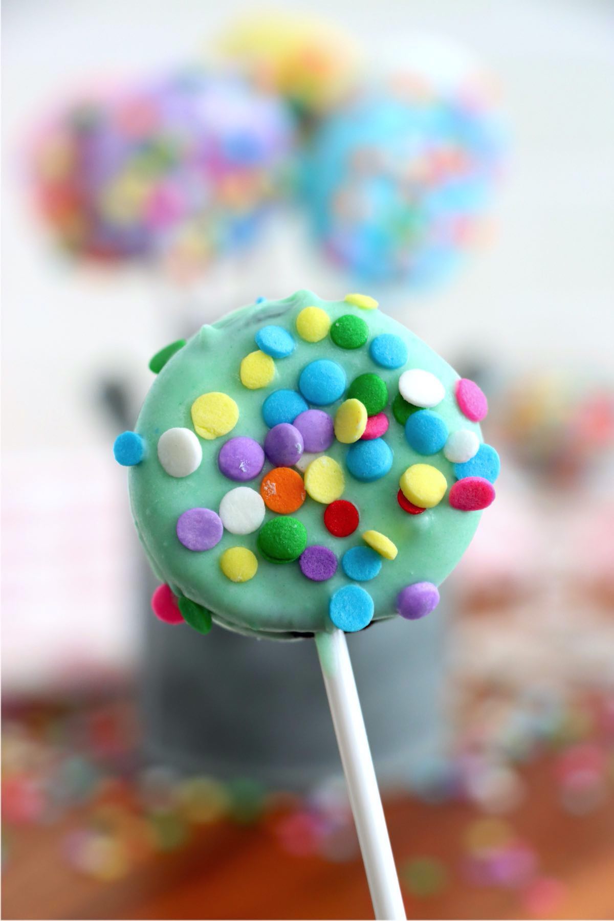 It's important to put a bit of melted chocolate on the end of your stick before inserting it into the cookie. Without that, the Oreos will fall off.