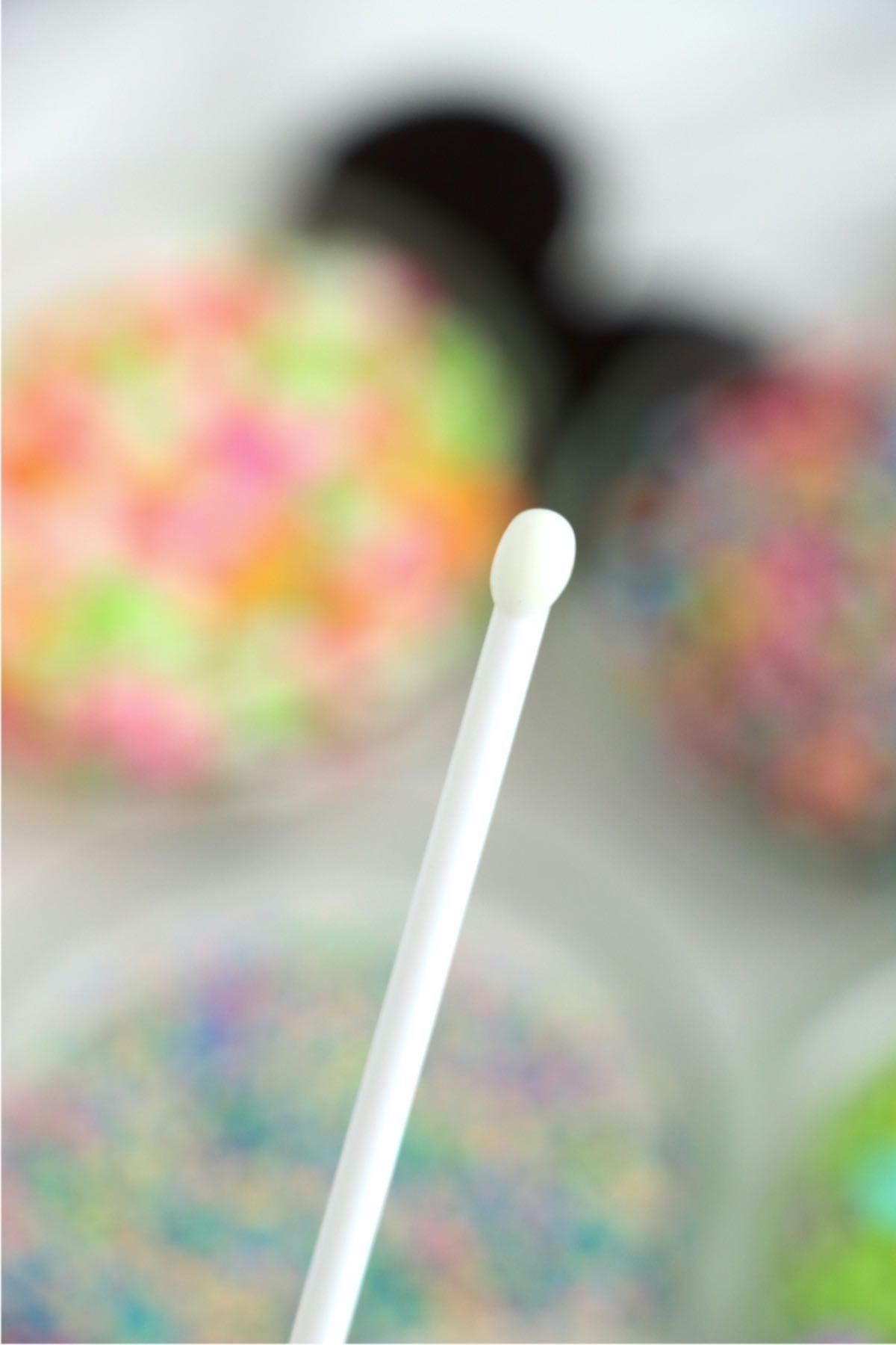 In addition to dipping the ends of the cake pop sticks in the melted bark, you have to ensure that you get enough melted bark on them. They're the glue that literally holds these treats together.