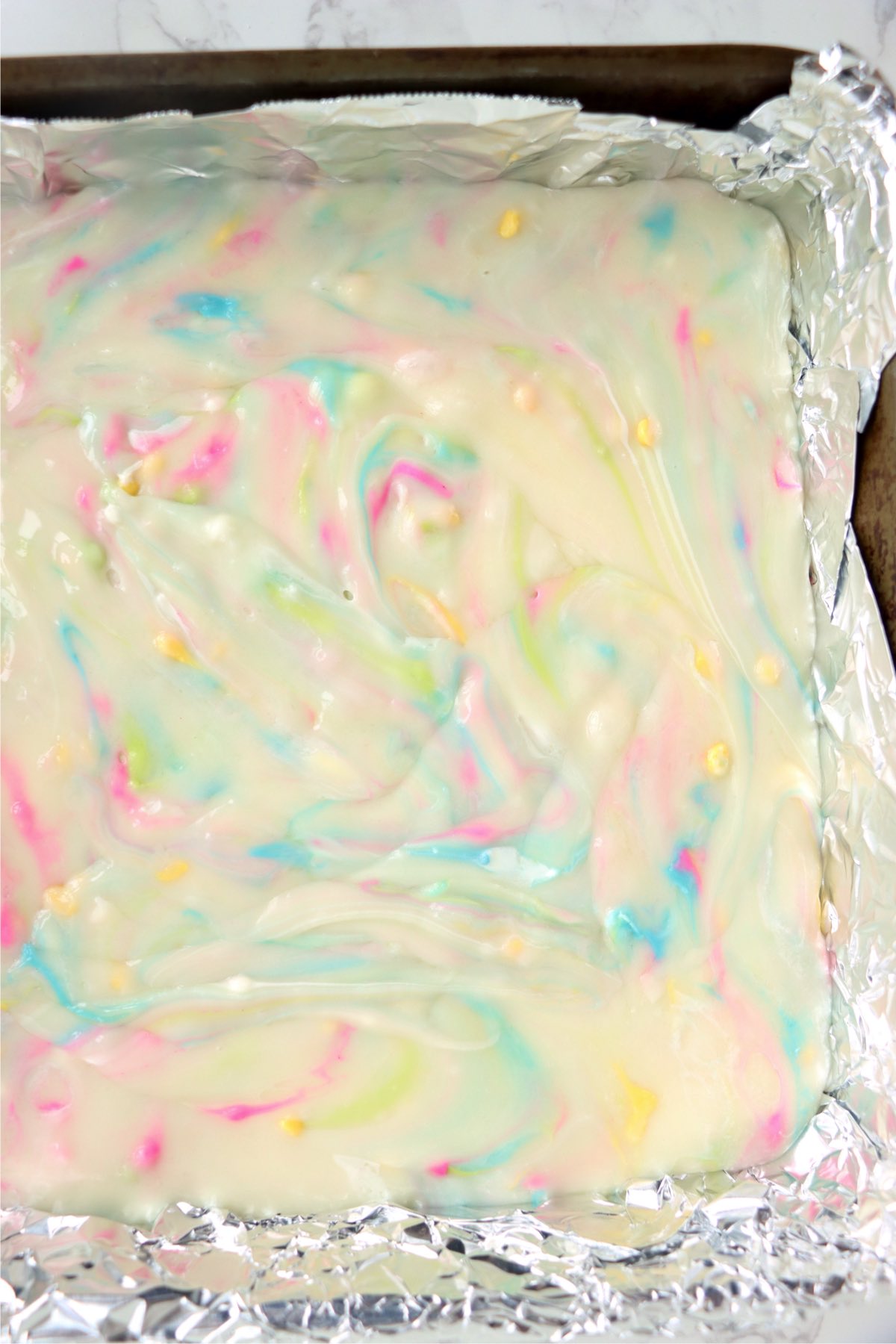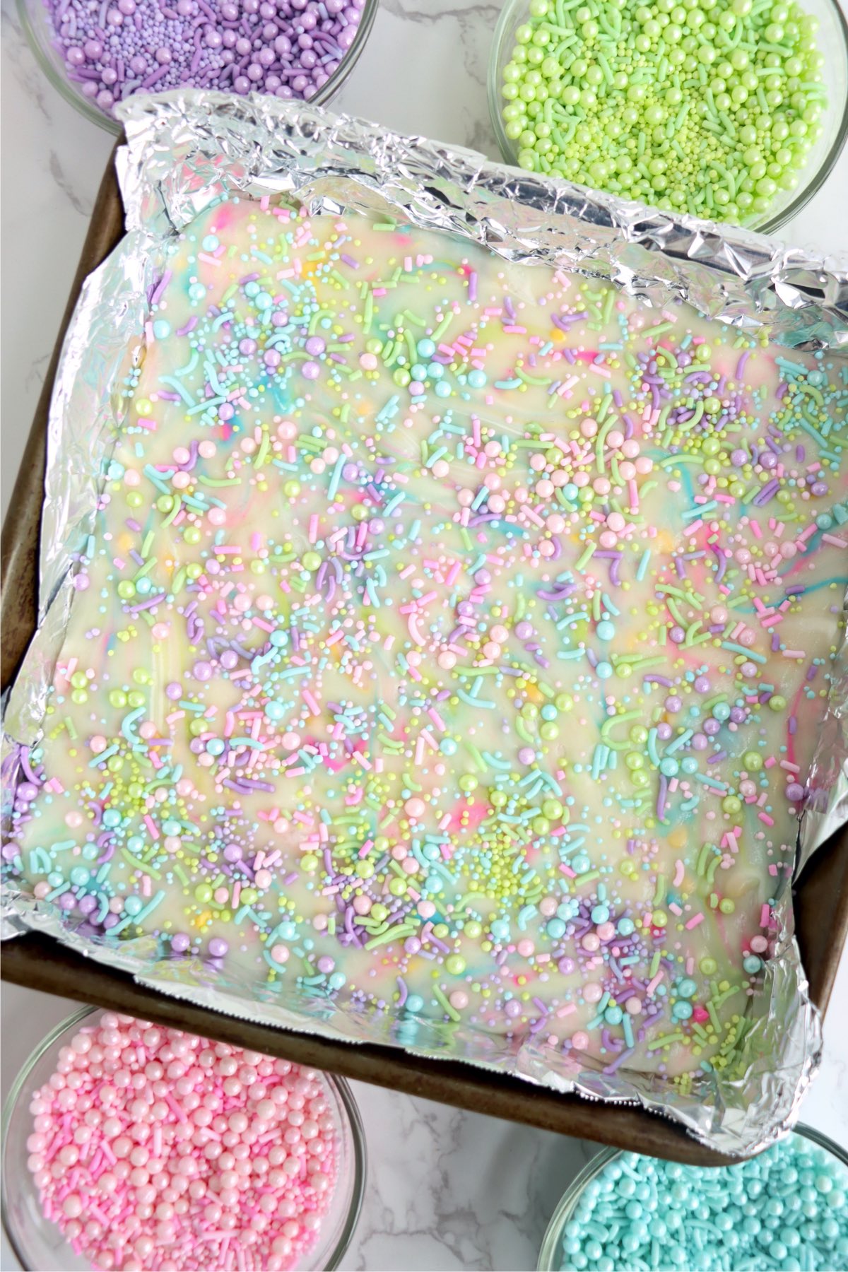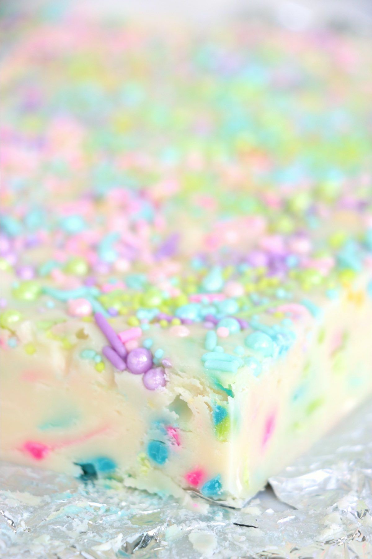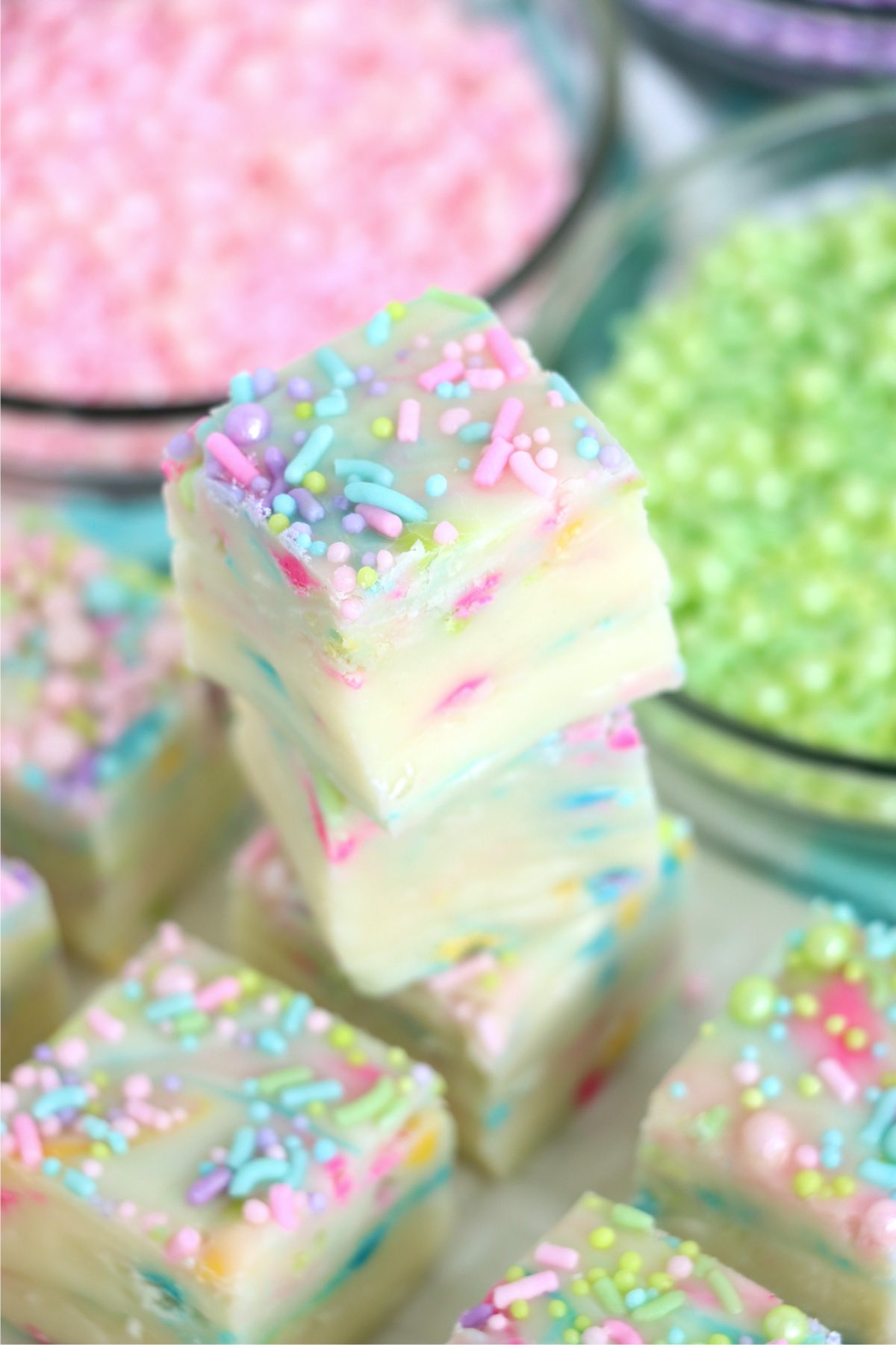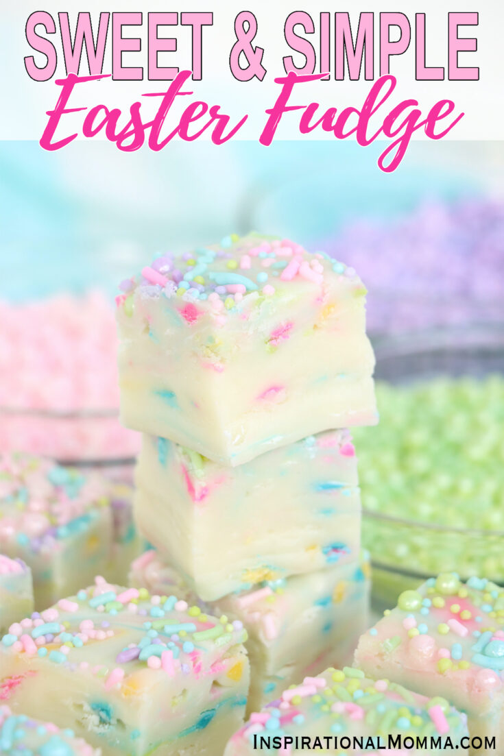 This Easter fudge is rich, creamy, and delicious. It's loaded with fun pastel colors and sprinkles, and it makes the perfect Easter snack or dessert.