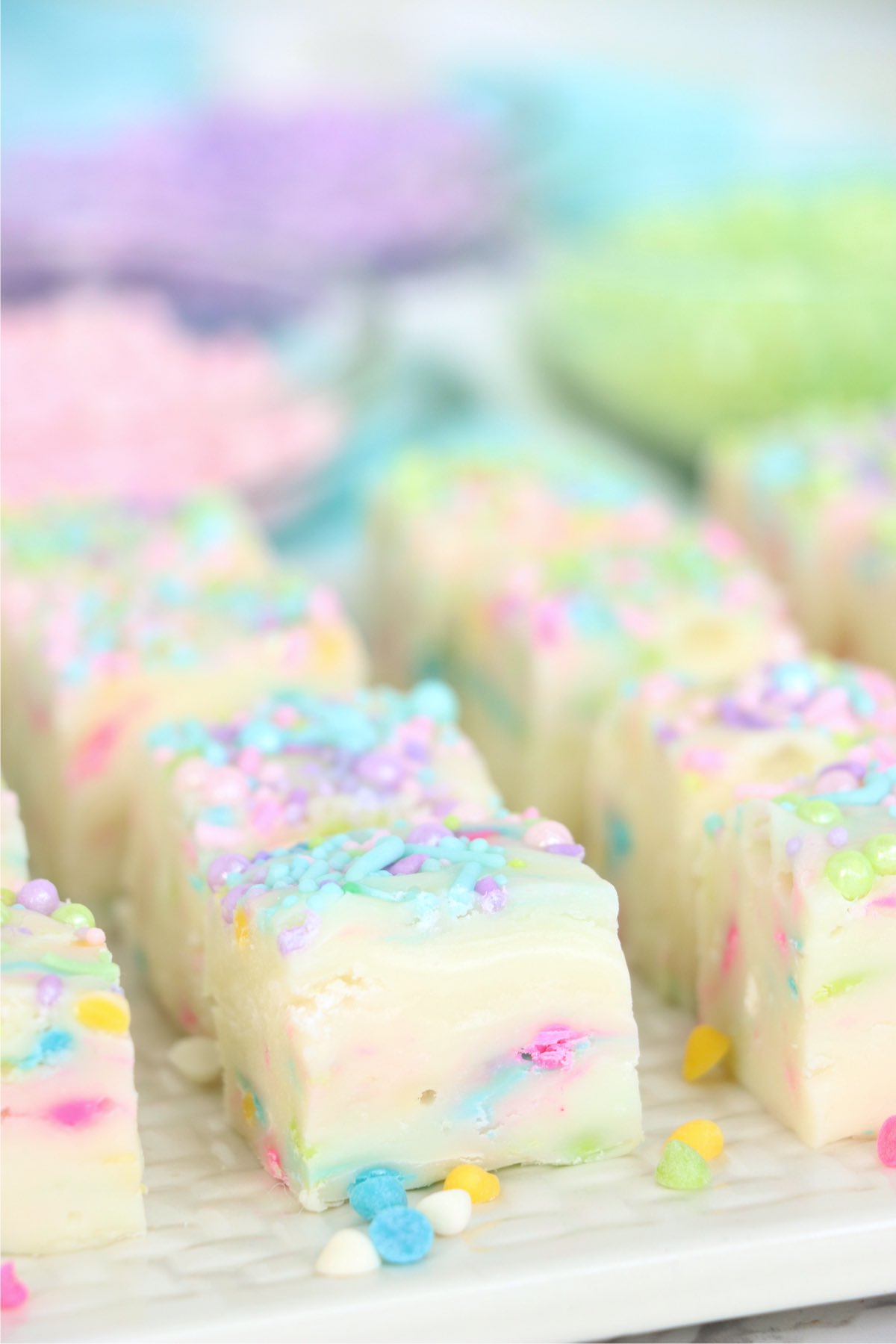 This Easter fudge is rich, delicious, and loaded with beautiful pastel colors. It's the perfect sweet treat for the season.