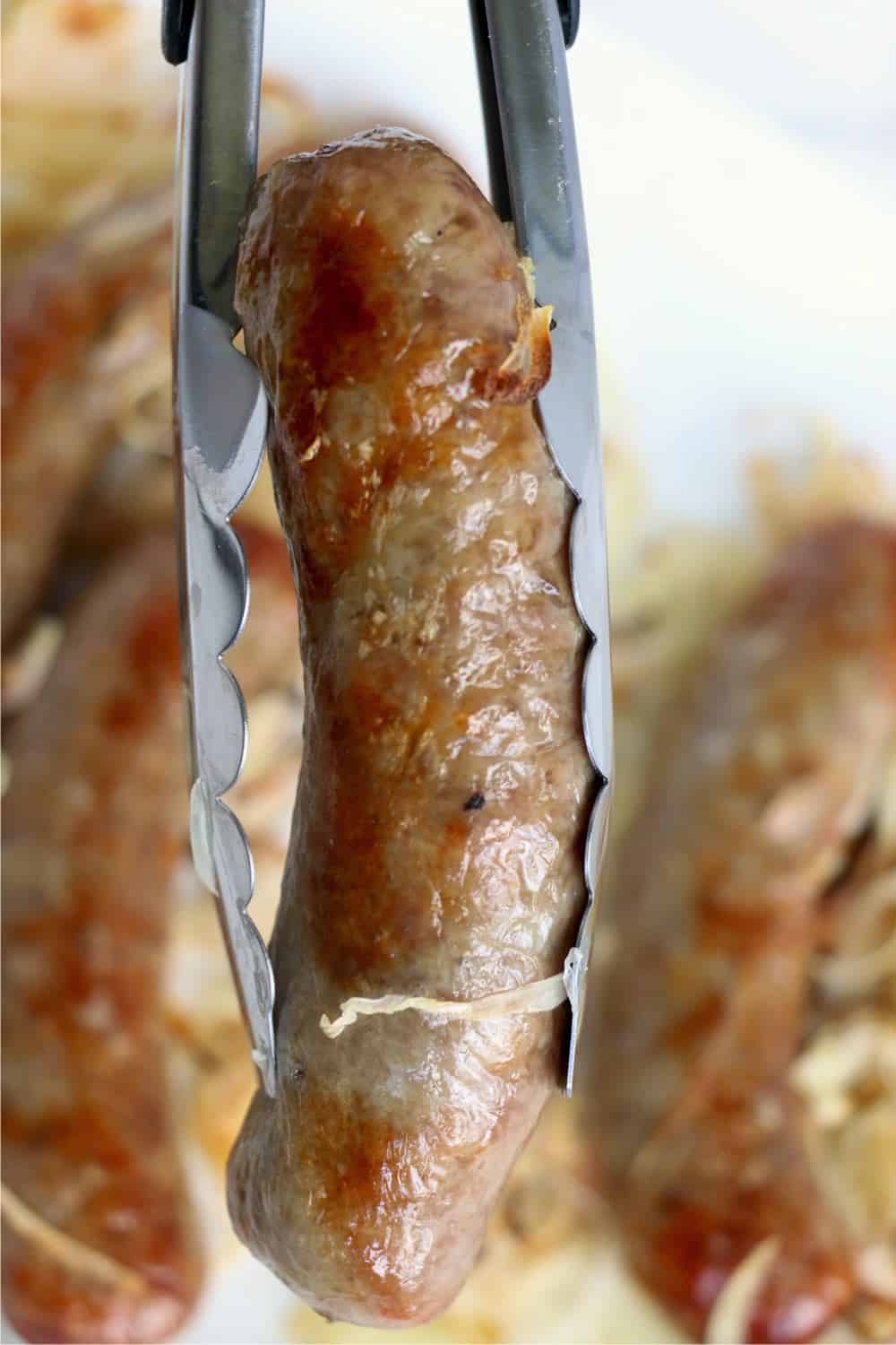 Make sure that you thoroughly thaw out your brats before cooking them in the air fryer. If you try to cook a frozen brat, it will make the inside very chewy and it also prevents them from getting crispy on the outside.