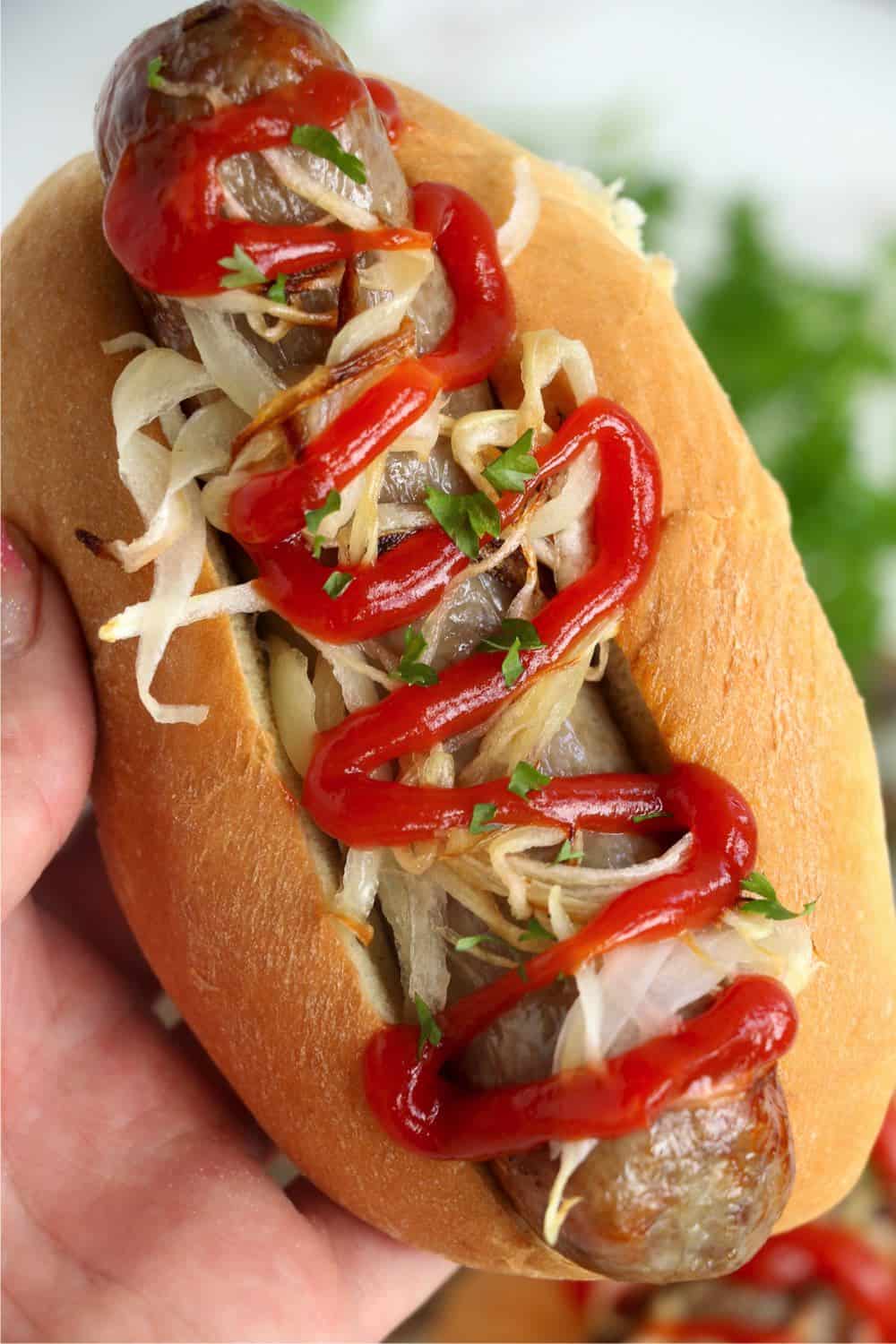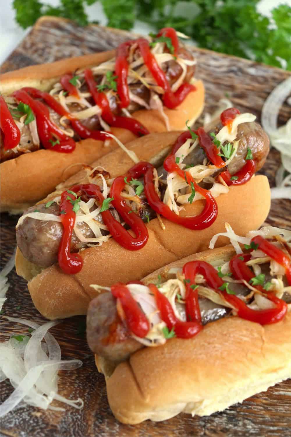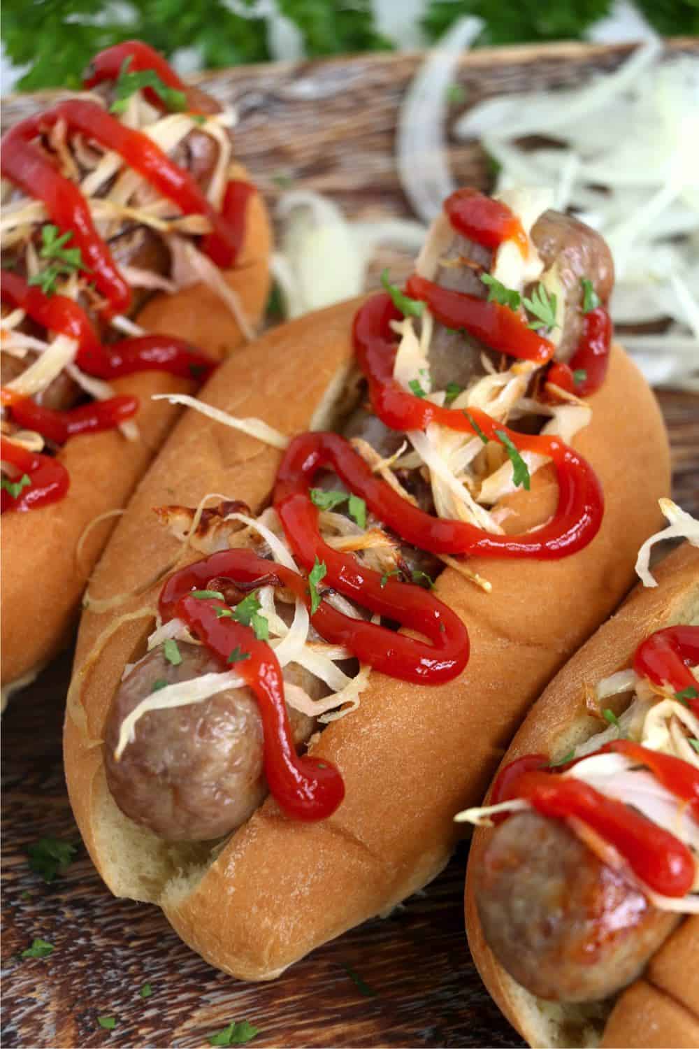 Well, the reason that I love to cook my brats in an air fryer is because they are so crispy. These crispy brats are delicious and just as good as the ones served at a fair or restaurant!