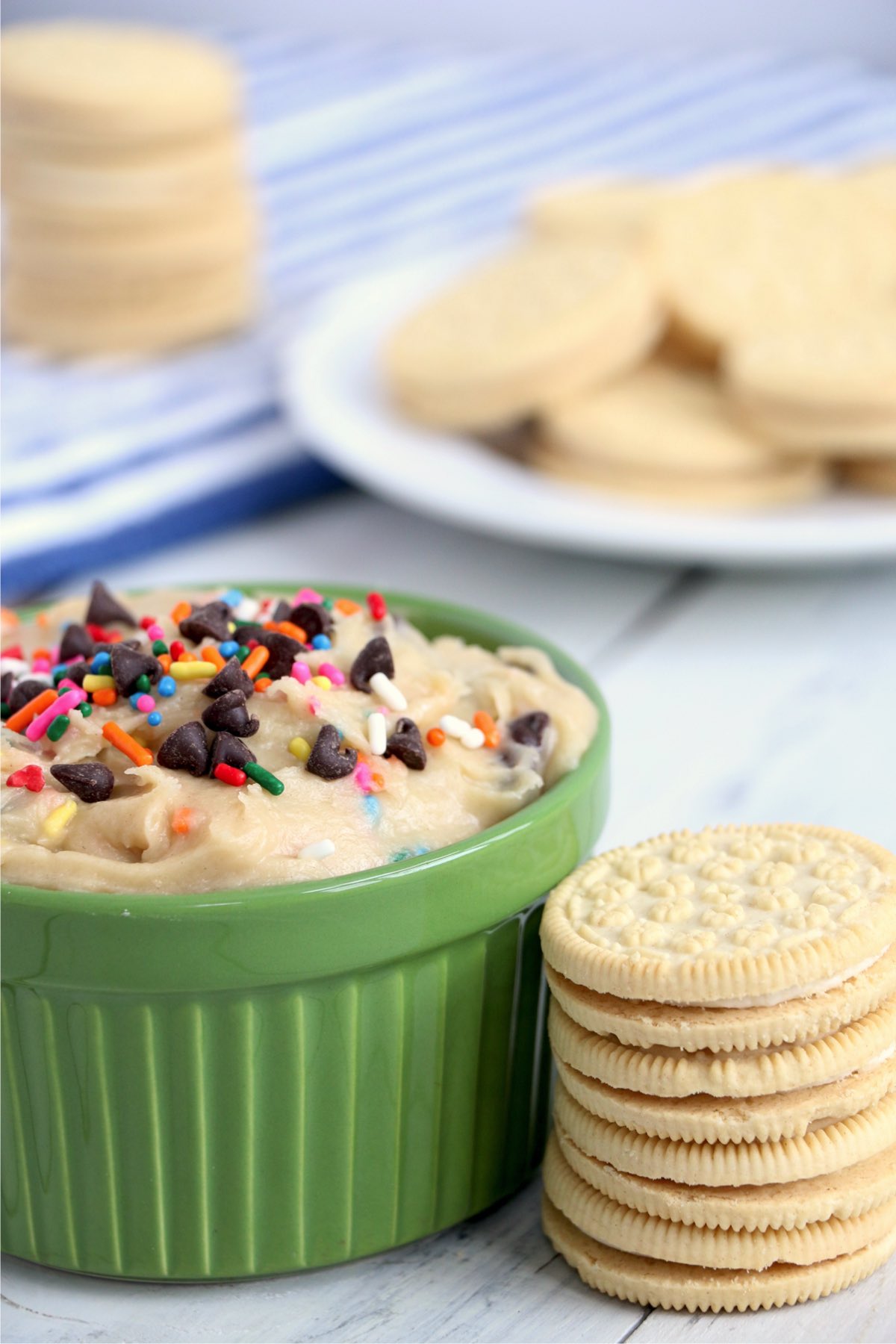 I love cookie dough. In fact, I think the best part of making cookies is sneaking little bites of the dough while I'm making them. That's why I love this dip. It's everything I love about cookie dough but in a dippable form.