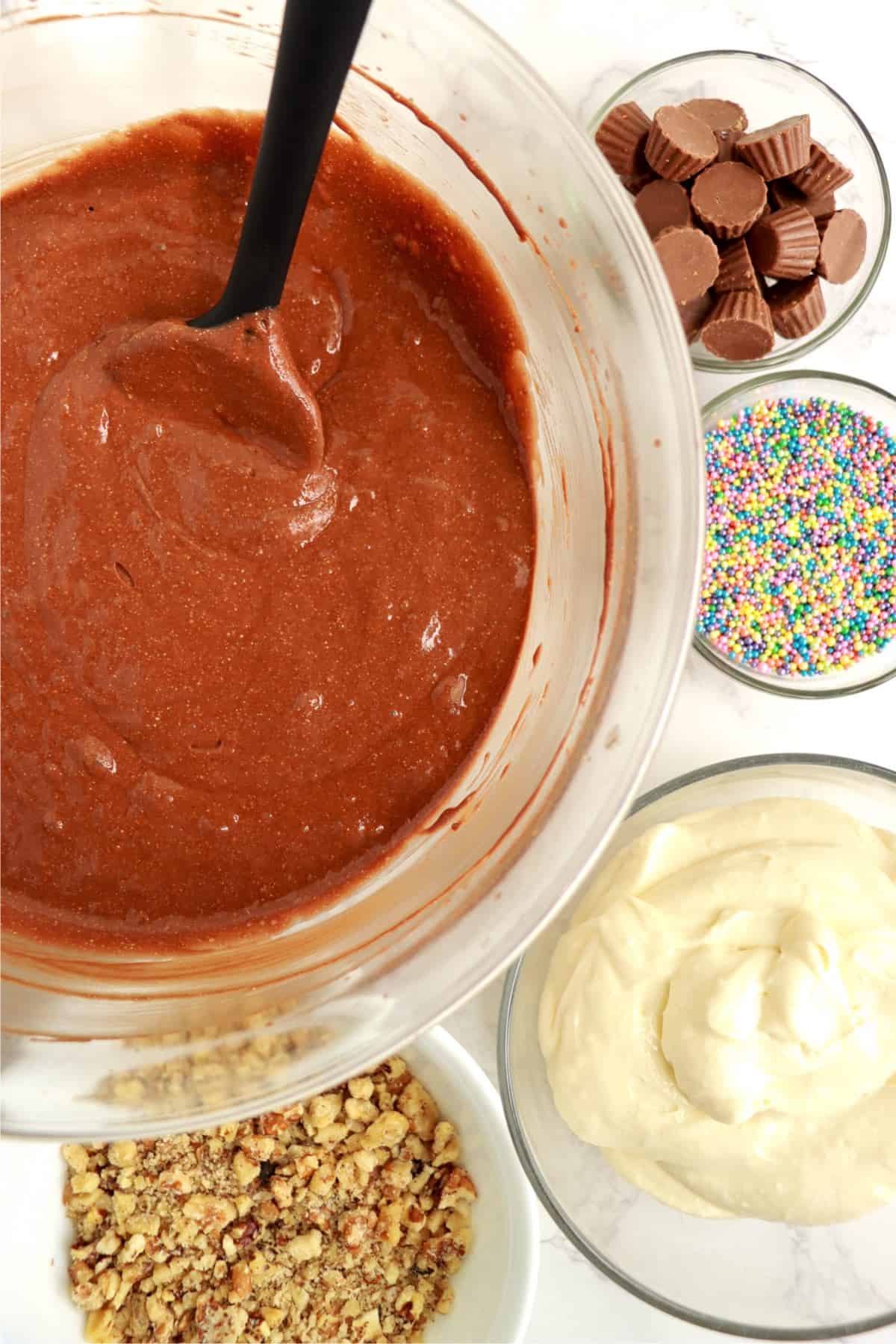 - Chocolate cake mixed (prepared according to box directions)