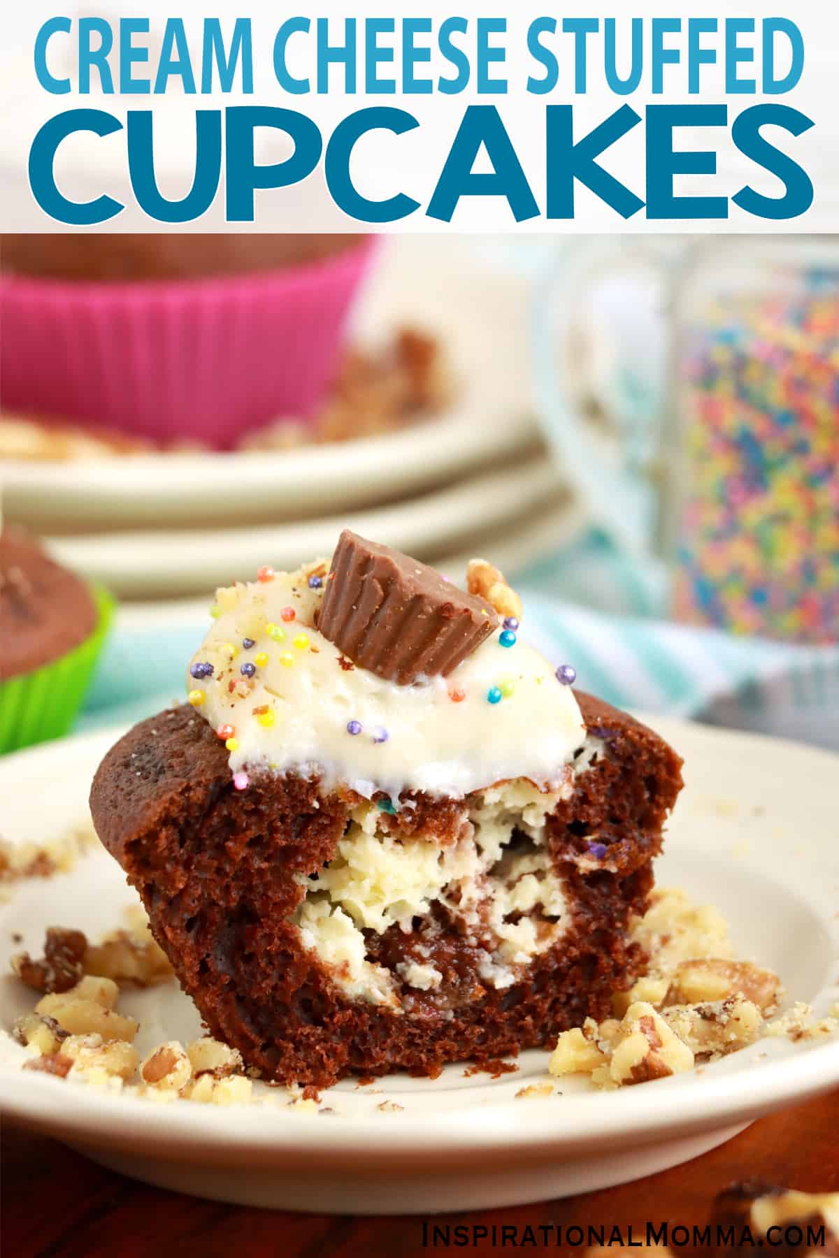 Cream cheese stuffed cupcakes combine tender chocolate cake with a cream cheese filling and cream cheese frosting.