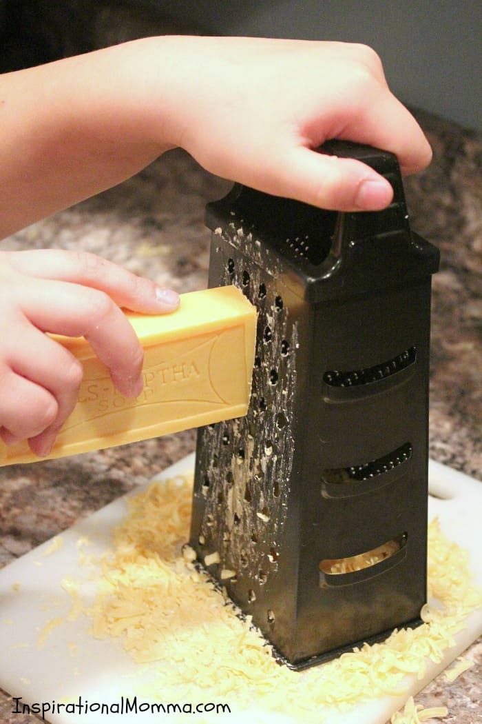 Step 1: Grate Fels-Naptha with a cheese grater. (My daughter had a blast with this, until I caught her trying to convince our three-year-old that it was cheese and he should eat it.)