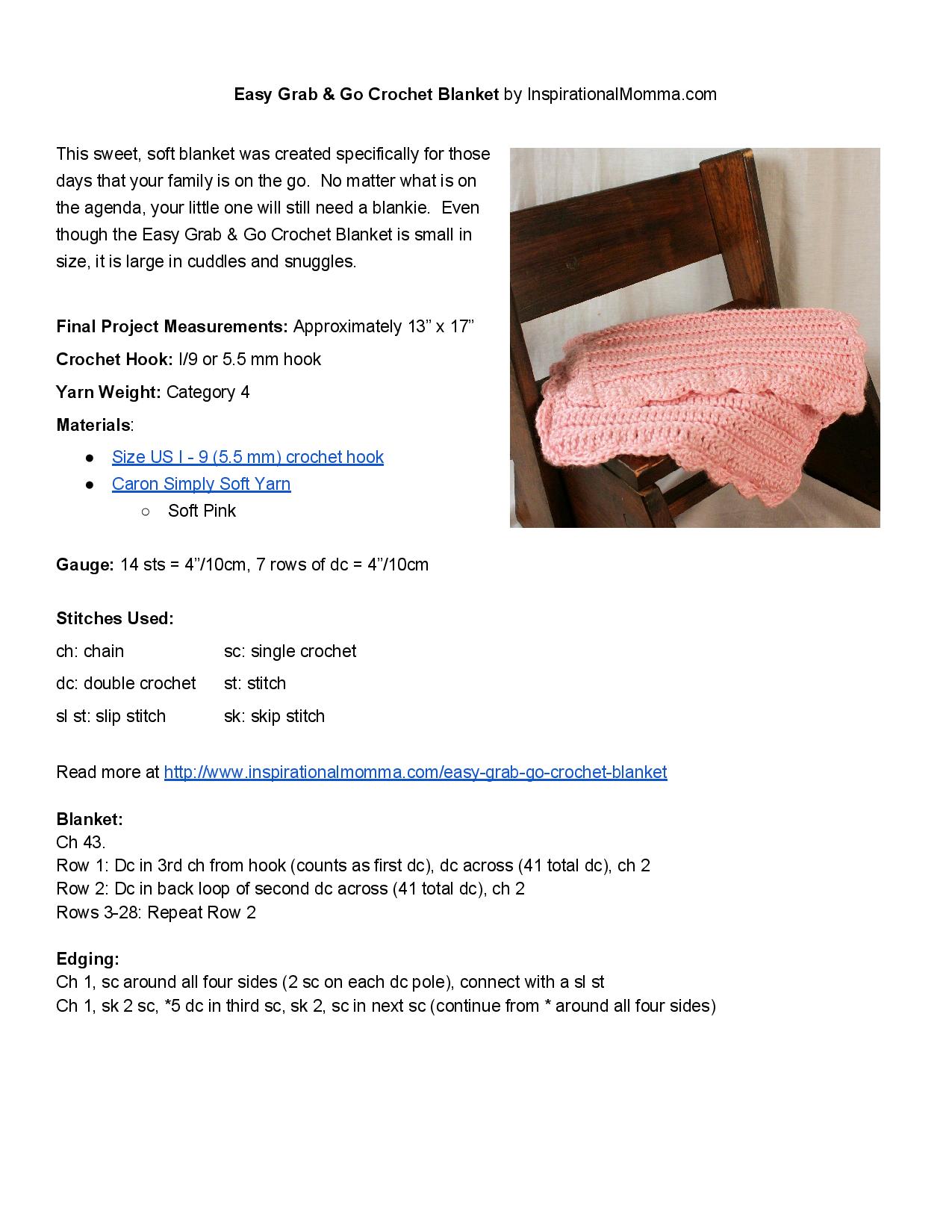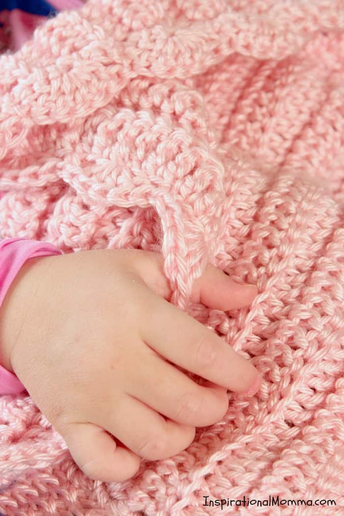 This pattern was specifically created for this purpose. There have been too many times, while heading out for the day, that I realize we forgot the coveted blanket. The Easy Grab & Go Crochet Blanket gives the same cuddles and comfort of a larger blanket but is so much easier to grab and go! Also, the Simply Soft Yarn that I am addicted to is so incredibly soft that I know your little one will love it too!