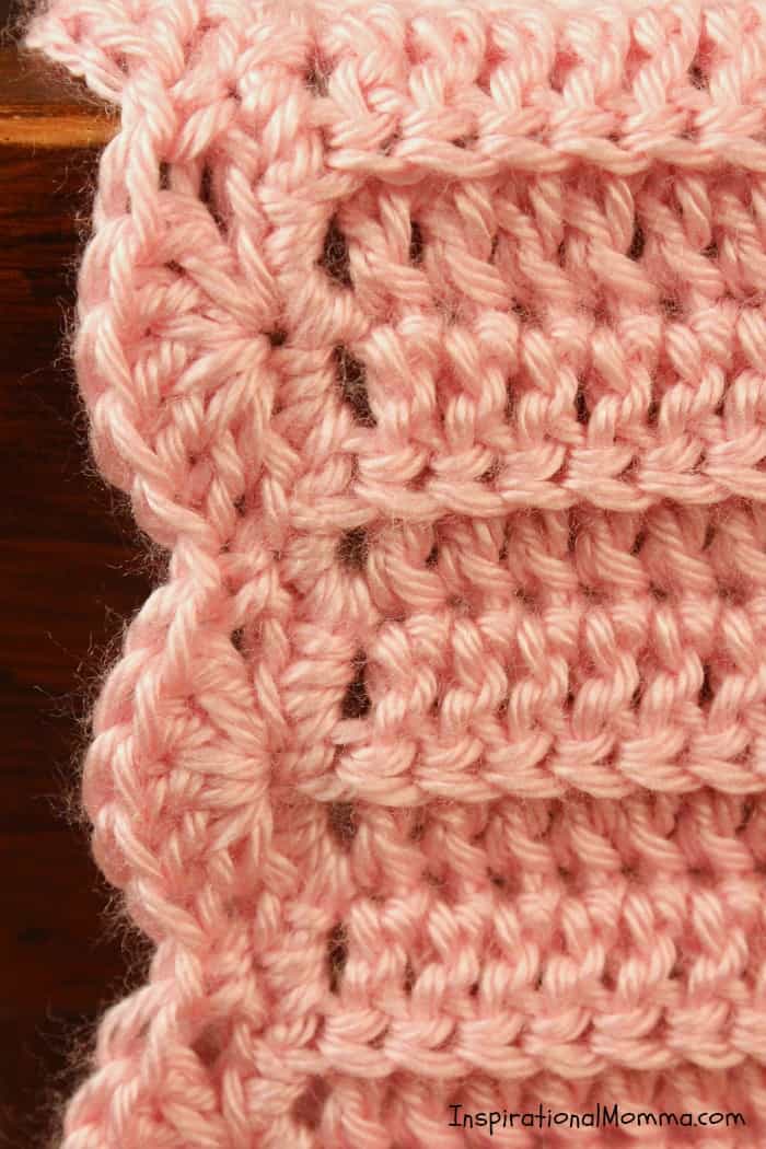 When doing a regular double-crochet stitch, you grab both loops from the previous row with your hook. To create the look of this blanket, you will only grab the back stitch. I hope this helps.