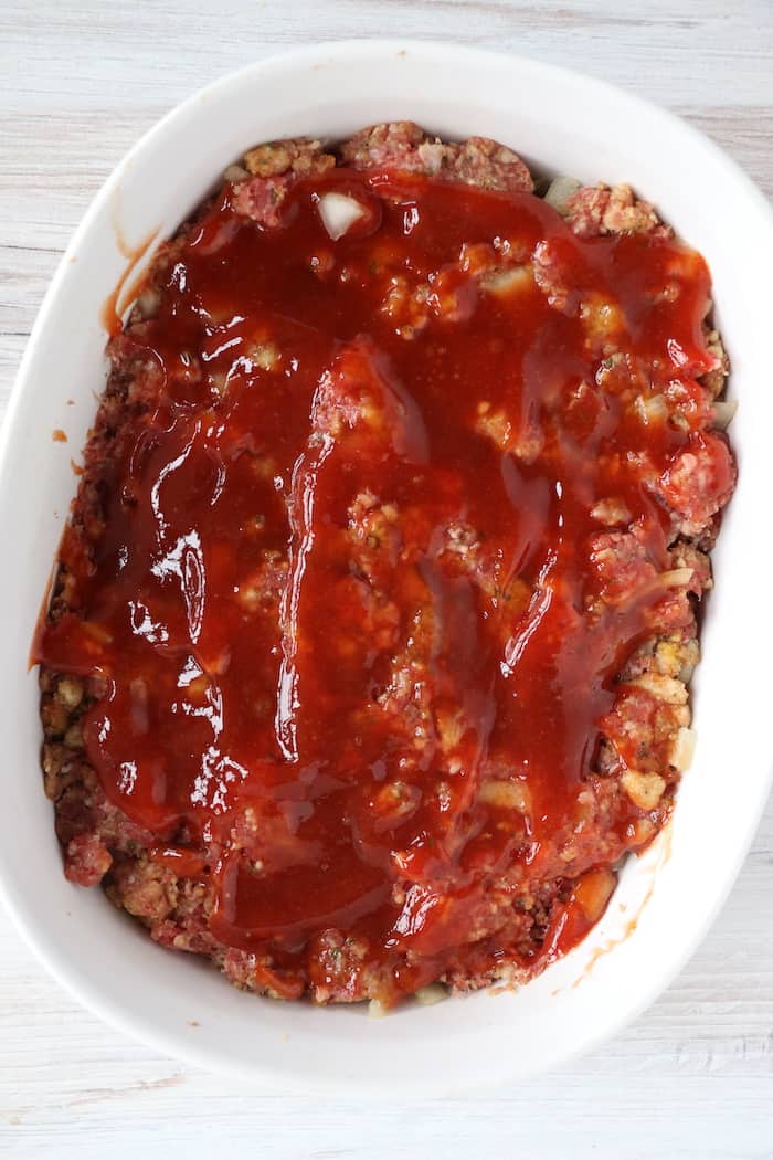 - In small mixing bowl, combine 1/2 cup ketchup and brown sugar for topping. Spread over meatloaf.
