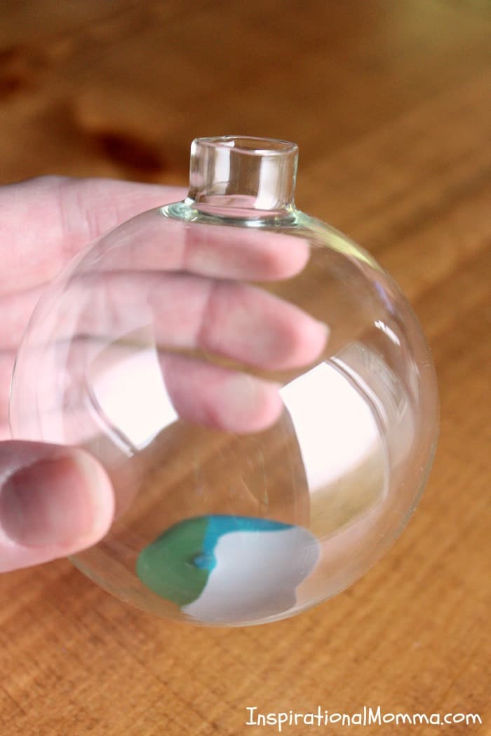 Step 3: Begin spinning the ornaments to allow the paint to coat the entire inside. If you find you do not have enough paint, do not be afraid to add more.