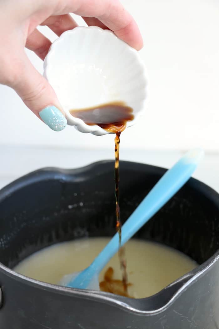 Next, add the vanilla, and stir it in until the mixture is uniform throughout.