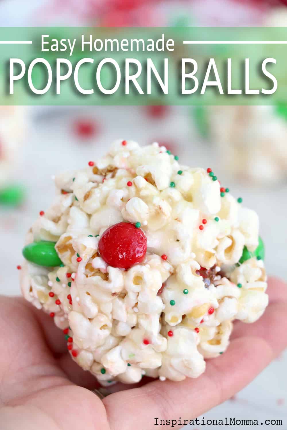 Easy Popcorn Balls are a perfect sweet, delicious treat for any occassion. This old-fashioned recipe is sure to put a smile on everyone's face! #inspirationalmomma #easypopcornballs #popcornballsrecipe #recipe #dessert #sweet #easy #Christmas #holidays